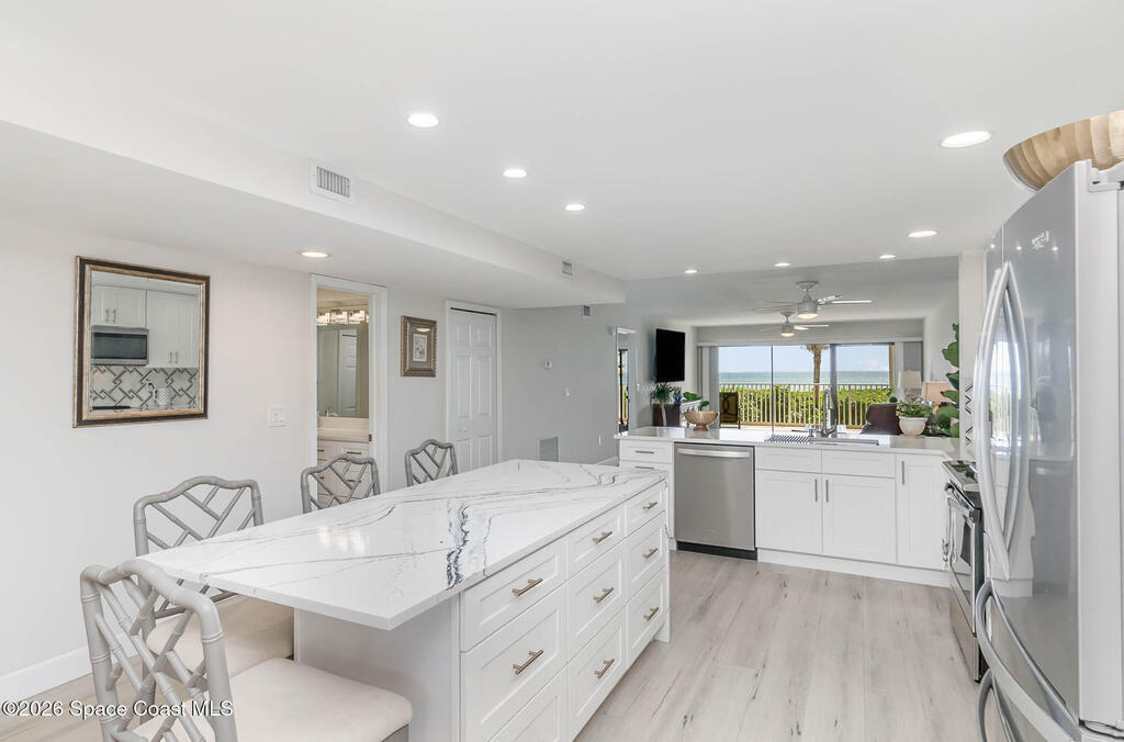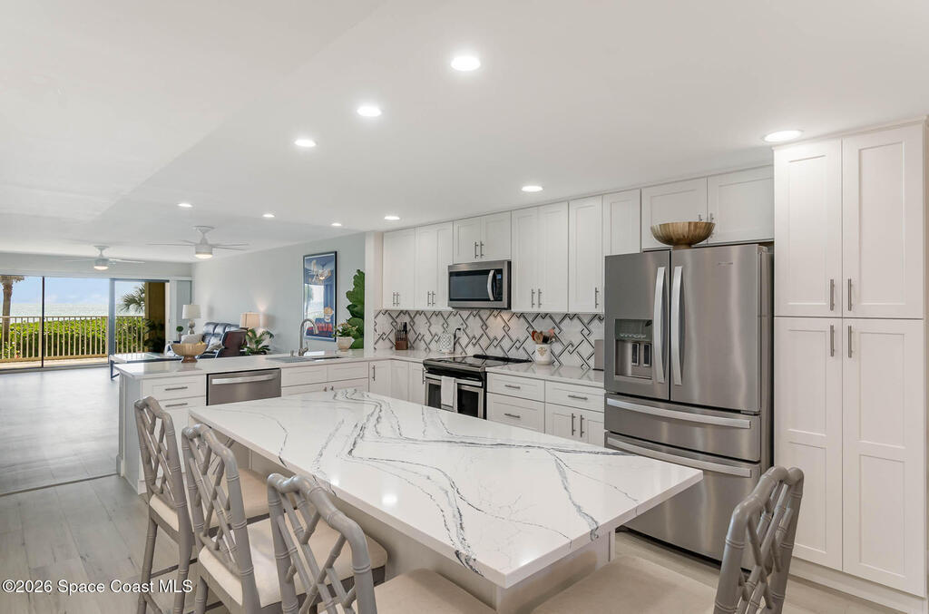 Welcome to your beachfront escape! This stunningly remodeled 2BR/2BA condo in Cocoa Beach offers breathtaking, direct ocean views and a seamless blend of luxury and comfort. The Gourmet Kitchen features Expansive Cambria Quartz countertops that provide plenty of room for entertaining and meal prep. Two spacious bedrooms, each featuring a comfortable King-size bed. Fully furnished and tastefully decorated with every essential provided. Relax on your private balcony and soak in the tranquility of the Atlantic Ocean! Enjoy the sparkling community pool, private beach access, and the convenience of an in-unit washer and dryer. You will even get to watch Rocket Launches from the balcony! You will never want to leave! NOT AVAILABLE FOR 2027 SEASON.