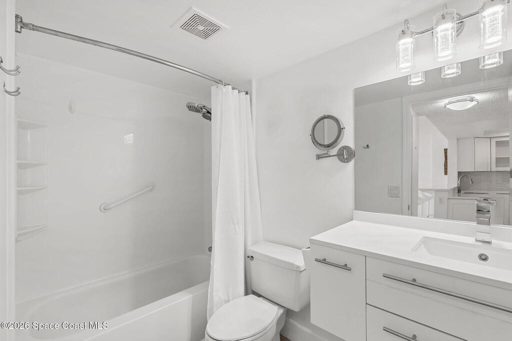 DIRECT OCEAN VIEWS | HUGE BALCONY | BEST VALUE ON THE BEACH!Direct, unobstructed Atlantic Ocean views hit you the second you walk through the door of this 3rd-floor condo at Royale Towers. The oversized private balcony delivers wide, sweeping ocean views, perfect for rocket launches, cruise ships, and endless sunrises.Inside, the open layout is built around the view, with tile and luxury vinyl flooring throughout (no carpet). The updated kitchen features soft-close cabinetry, quartz countertops, tile backsplash, beadboard ceiling, and recessed lighting.Additional highlights include in-unit laundry, hurricane shutters, a 1-car garage, and a spacious primary suite.Resort-style amenities include a heated pool, spa, clubhouse, fitness center, sauna, tennis, and pickleball. Pet-friendly and ideally located near Publix, restaurants, Lori Wilson Park, and the dog park.You don't often find direct ocean views like THIS at THIS price point. Schedule your tour today!