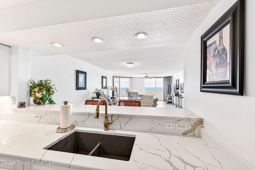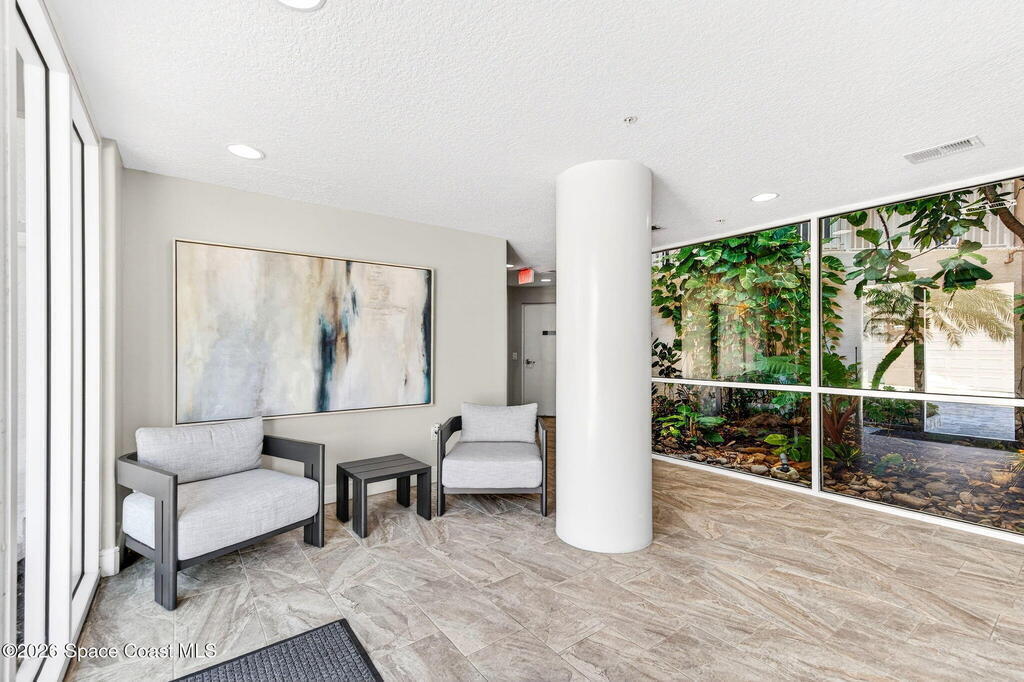 Elevated coastal living meets refined privacy in this exceptional 6th-floor residence at Gardenia. Tucked within one of Indian Harbour Beach's most exclusive oceanfront enclaves, this spacious condo offers a seamless blend of luxury, security, and breathtaking Atlantic views. Massive glass sliders invite natural light to pour into the main living space and primary suite, both opening to a generously sized balcony where sunrise views over the ocean become part of your daily routine. The thoughtfully designed layout features three well-appointed bedrooms along with a versatile bonus space--perfect for a home office, flex room, or additional dining area to suit your lifestyle. Gardenia continues to set the standard for well-maintained, upscale living with recent upgrades including a 2023 roof replacement, newly installed paver parking, completed structural inspections (SIRS), and the added peace of mind of no upcoming assessments. Residents enjoy a secure, private environment with garage