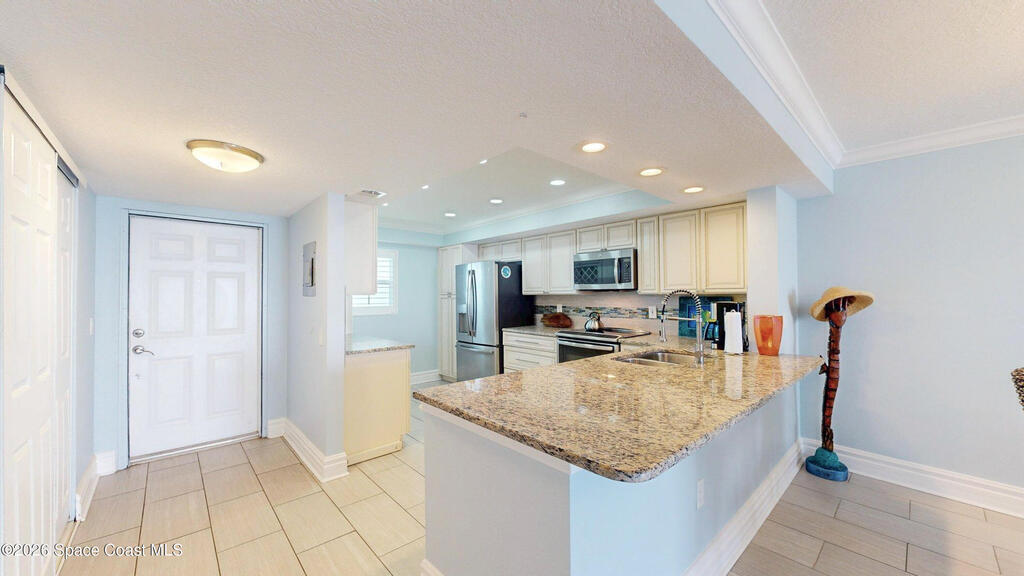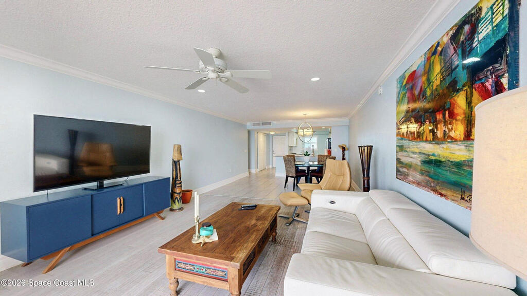 Wake up to breathtaking ocean sunrises and end your day with rocket launches!! Perched on Florida's stunning Space Coast, this direct oceanfront, top-floor penthouse offers panoramic views of the Atlantic Ocean and the Banana River. Residents/Boaters also enjoy the deeded dock! Fully renovated, the penthouse combines coastal elegance with modern sophistication for a truly elevated lifestyle.The interior features distressed bamboo flooring, sand-toned plank tile, and a fully upgraded kitchen and baths with premium finishes. Additional highlights include new impact windows and sliders, induction cooktop, stainless steel appliances, plantation shutters, tinted reflective glass, a spa-inspired jetted tub with instant hot water, and a tankless hot water heater--every detail thoughtfully designed.This pet-friendly community allows two dogs with no weight limit. A MUST SEE!!!!!!
