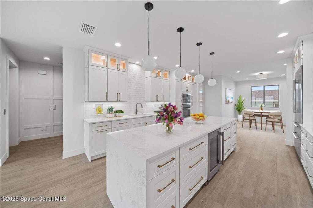 Experience modern coastal luxury in this brand-new oceanfront residence ideally located just steps from the vibrant 5th Ave District in Indialantic. Designed for effortless beachside living this three-story home features an elevator, stunning tile flooring throughout, quartz countertops and premium stainless-steel appliances. Expansive impact-glass windows frame panoramic ocean views and fill the space with natural light. The versatile lower level includes a full kitchen--perfect for a guest suite or short-term rental opportunity. Enjoy the best of the barrier island lifestyle with nearby riverfront parks for sunset strolls, pristine beaches for morning surf sessions and A-rated schools for peace of mind. Walk or bike to boutique shops, cafes and local dining favorites all while savoring the rare combination of luxury, convenience and income potential that this oceanfront retreat offers.