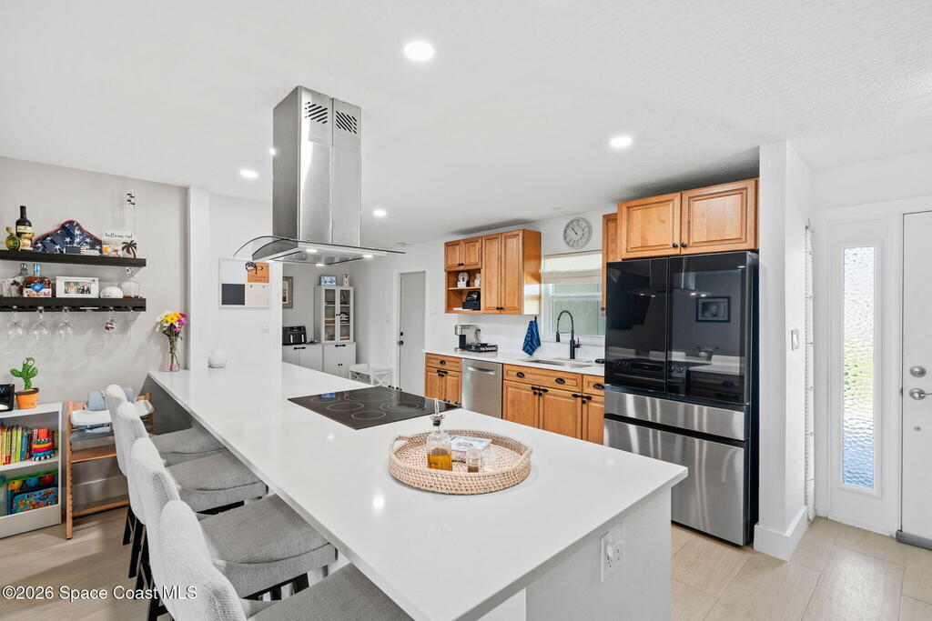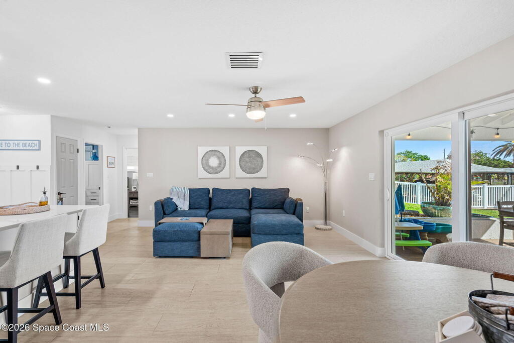 Recently renovated and perfectly positioned, this canal-front retreat offers the ideal blend of coastal lifestyle and convenience--just blocks from the beach and within walking distance of downtown Cocoa Beach, restaurants, and local amenities, and close to nearby schools.This solid concrete block home features a desirable split floor plan with 3 bedrooms and 2 bathrooms. Boating enthusiasts will appreciate the private dock and 16,000 lb boat lift with direct canal access.Inside, the open layout is enhanced by new wood-look porcelain tile and new baseboards throughout the main living areas, with vinyl plank flooring in the bedrooms. The kitchen has been updated with new countertops and newer appliances, and the guest bathroom has been tastefully remodeled.Enjoy a spacious screened-in porch overlooking tranquil canal views--perfect for relaxing or entertaining.