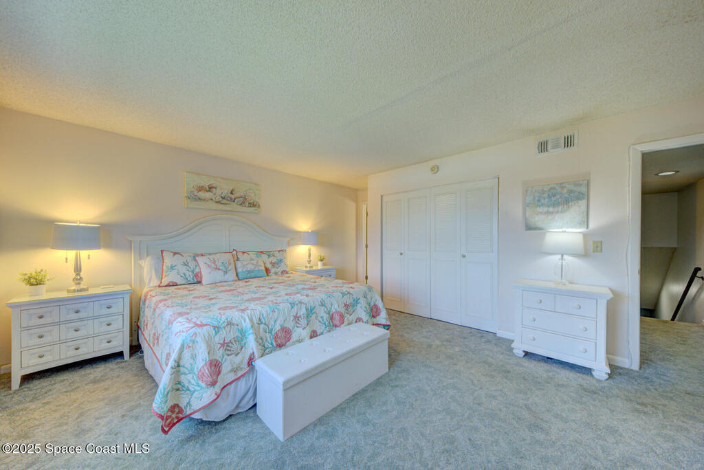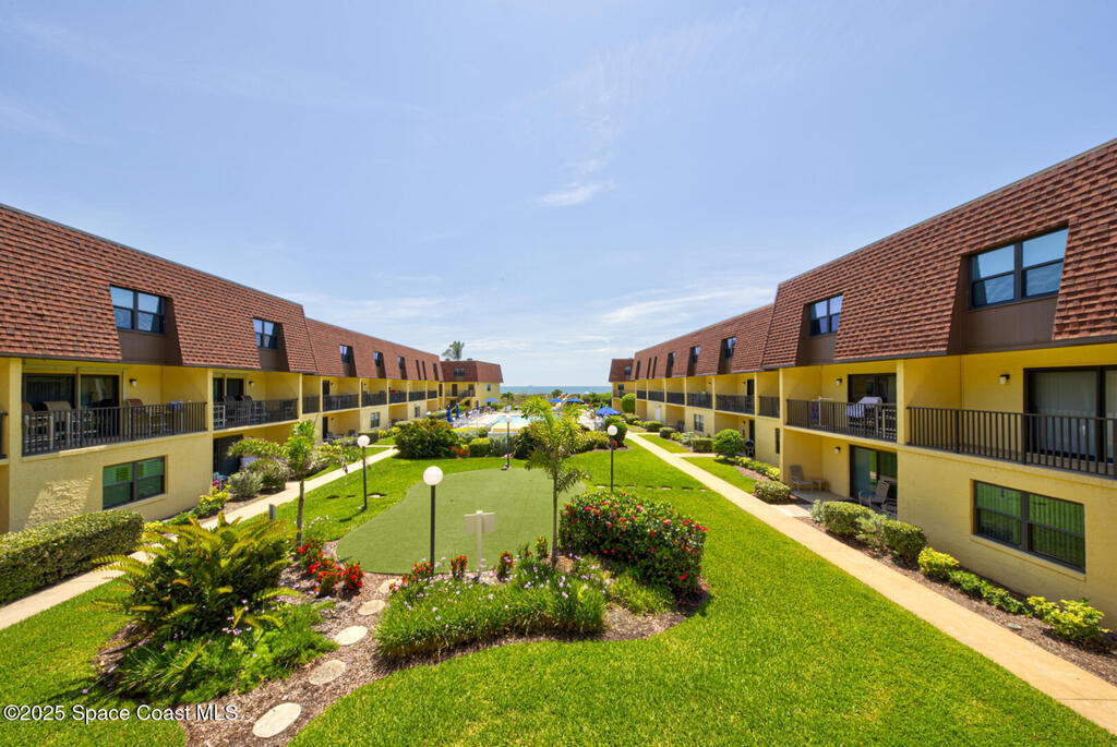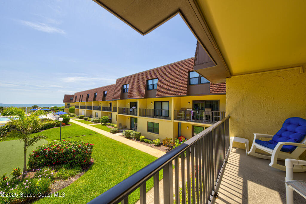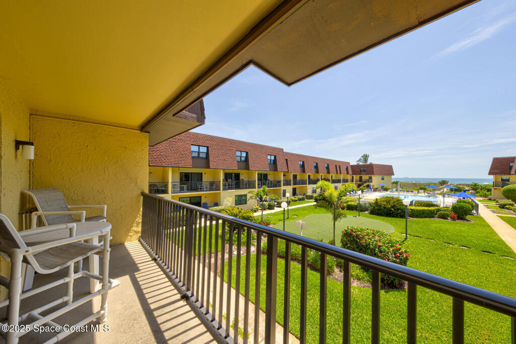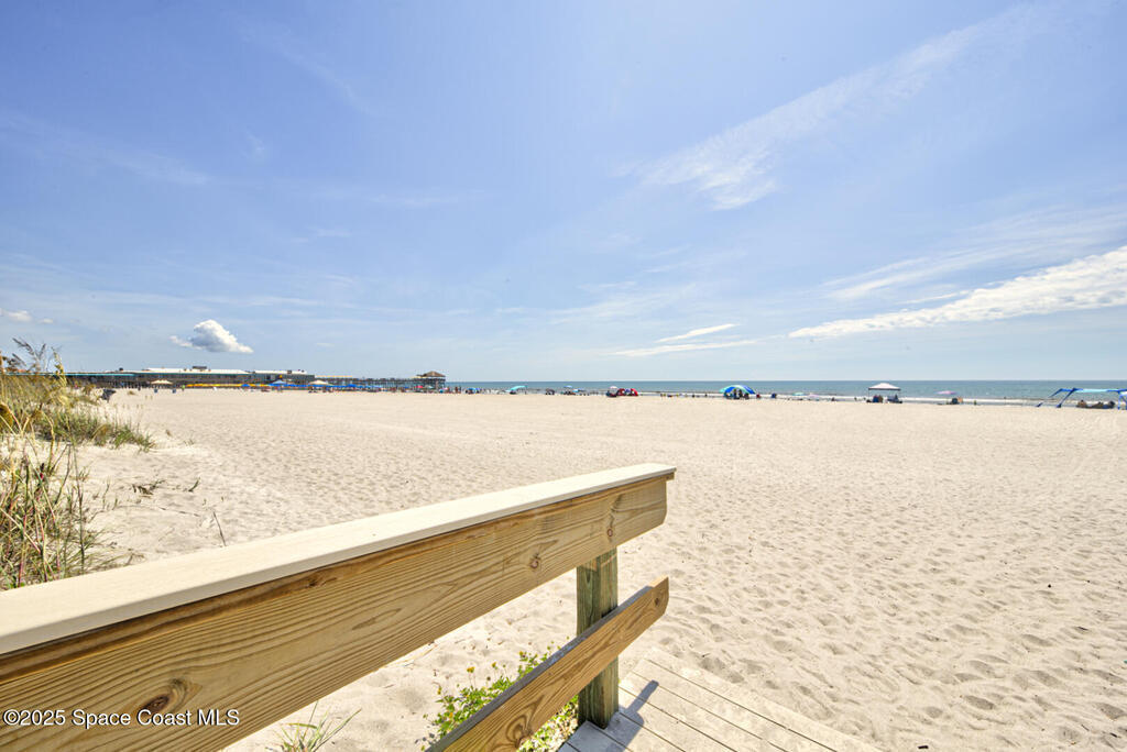 DIRECT OCEANFRONT CONDO! Rare opportunity to own a prime Cocoa Beach property just steps from the Cocoa Beach Pier. NO rental restrictions! Ideal as a high-performing Airbnb or your own private coastal retreat. Enjoy true beachfront living with nothing between you and the ocean except a narrow stretch of grass and dunes. Take advantage of the brand-new private boardwalk for easy beach access just steps from your door.This well-maintained unit features impact windows and sliding glass doors, a new front door, and a new AC system. The layout offers a functional and inviting floor plan with the living area, kitchen, and half bath on the first level, opening to a balcony perfect for enjoying ocean breezes and the Florida lifestyle.Upstairs, you'll find two spacious bedrooms, each with its own bathroom, including a primary suite with stunning ocean views and an en-suite bath. The community amenities include a beautiful pool, putting green, assigned carport, and on-site laundry facilities.