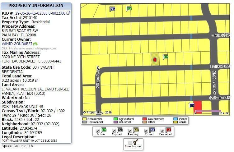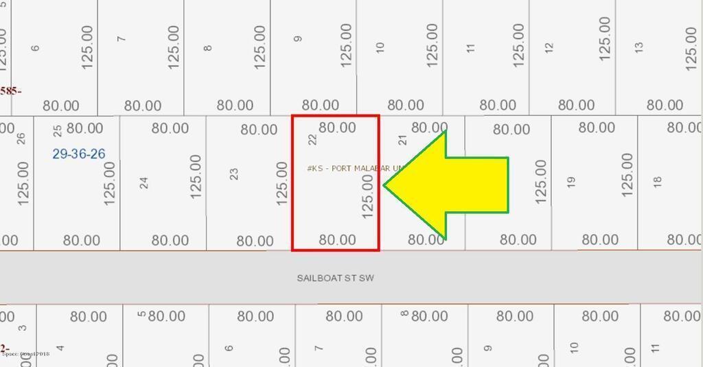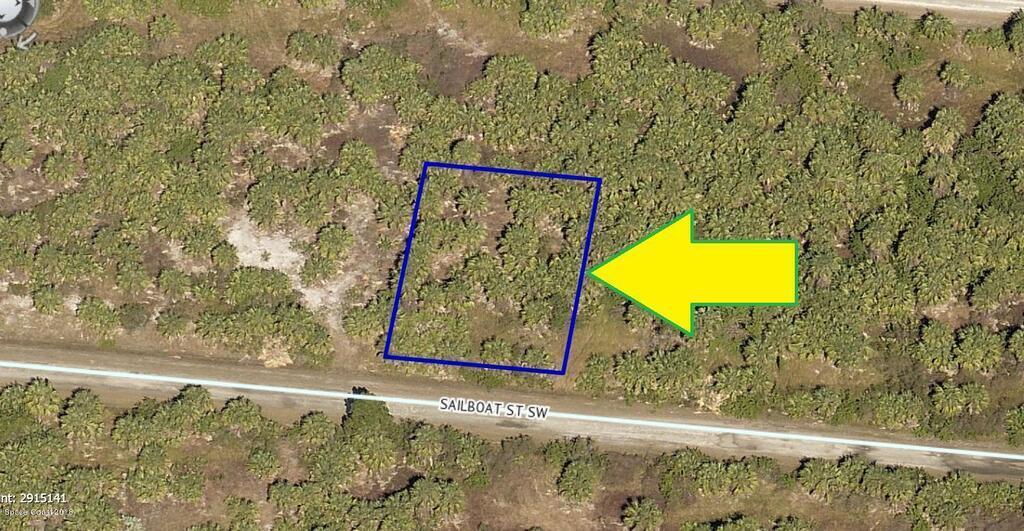 0.23 acre buildable residential lot available in Port Malabar Unit 49 of Palm Bay. This is one of 2 side-by-side adjacent lots for sale (the other is 851 Sailboat). Located in the southwest section, this lot is just 2.0 miles - 5 minutes to Westside Elementary School, 3.8 miles - 9 minutes to Publix Supermarket, 15.4 miles - 31 minutes to Melbourne International Airport, and 17.8 miles - 34 minutes to the beaches of Indialantic. From exit #176 of I-95 go west on Palm Bay Road NE for .7 miles, left on Minton Road for 3.3 miles, right on Jupiter Boulevard SW for .1 miles, left on DeGroodt Road SW for 3.3 miles, right on Osmosis Drive for 1.0 mile, left on Madden Avenue for .5 miles, and right onto Sailboat Street. The lot will be on your right.