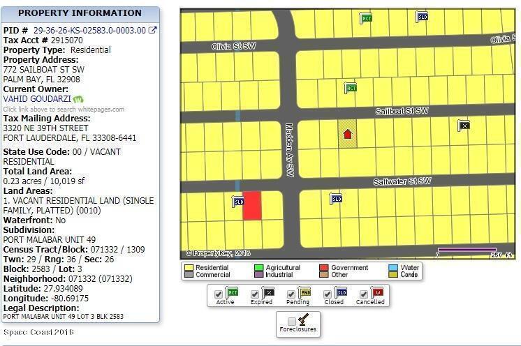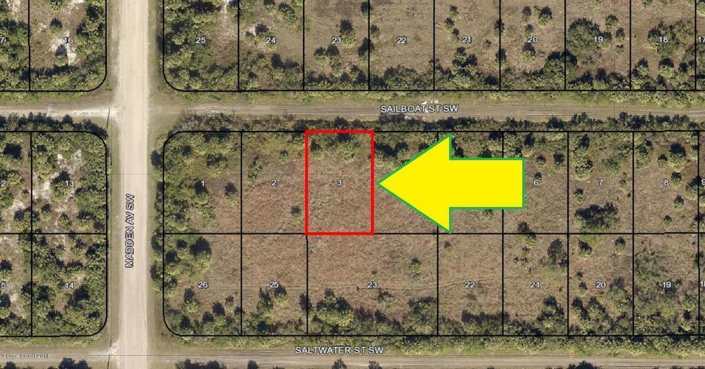 0.23 acre buildable residential lot available in Port Malabar Unit 49 of Palm Bay. Located in the southwest section, this lot is just 1.9 miles - 5 minutes to Westside Elementary School, 3.8 miles - 9 minutes to Publix Supermarket, 15.4 miles - 30 minutes to Melbourne International Airport, and 17.9 miles - 33 minutes to the beaches of Indialantic. From exit #176 of I-95 go west on Palm Bay Road NE for .7 miles, left on Minton Road for 3.3 miles, right on Jupiter Boulevard SW for .2 miles, left on DeGroodt Road SW for 2.5 miles, right on Osmosis Drive for 1.0 mile, left on Madden Avenue for .5 miles, and left onto Sailboat Street. The lot will be on your right.