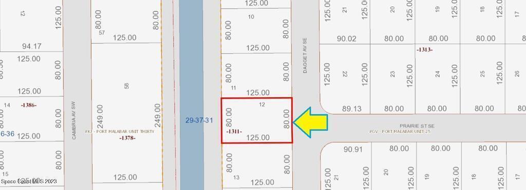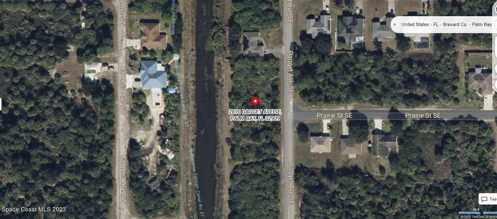 0.23 acre buildable residential lot available in Port Malabar Unit 25 of Palm Bay. Located in the southeast section, this lot has a drainage canal in the rear allowing more privacy, and is just 2 miles - 4 minutes to Westside Elementary School, 4 miles - 8 minutes to the Publix Supermarket, 14.5 miles - 29 minutes to Melbourne Airport, and 16.7 miles - 34 minutes to the beaches of Indialantic. From exit #173 of I-95 go west on Malabar Road for .2 miles, left on San Filippo Drive for 7.3 miles, and right on Dagget Avenue. The lot will be on your left.
