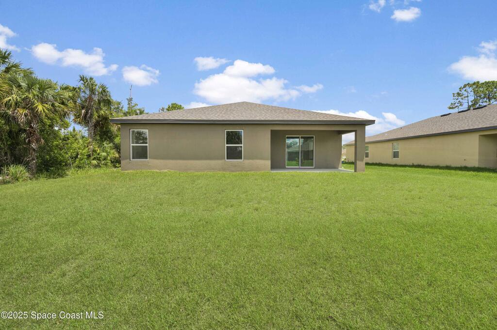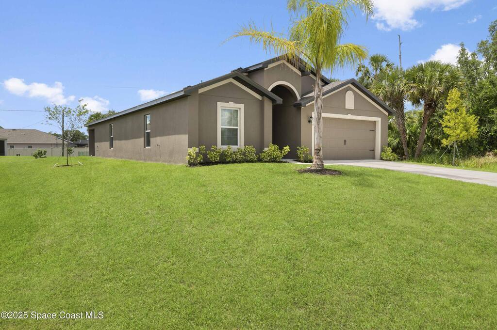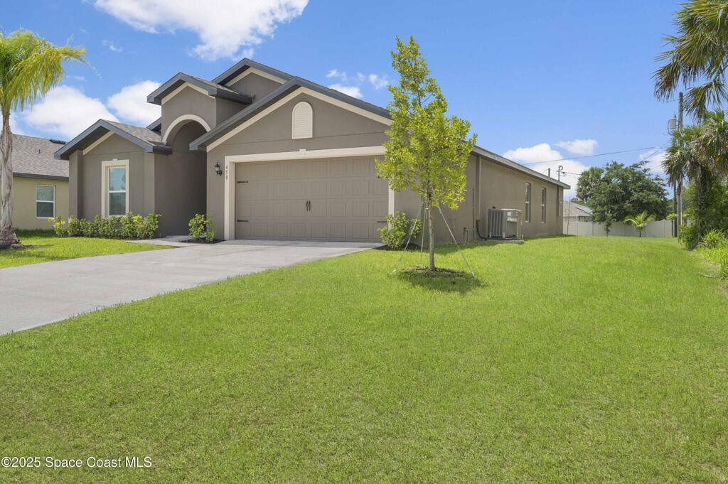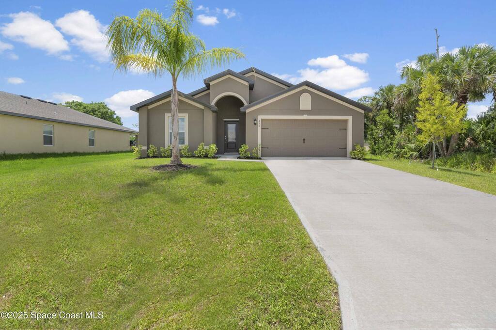 Ask us about our incentives, builder paid closing costs, & no down payment options! The Estero II floor plan serves as a spacious home for families and guests. Featuring an open concept floor plan, the home boasts 4 spacious bedrooms, 2 full bathrooms and is complete with over $10,000 in upgrades. These include energy-efficient Whirlpool(r) appliances, spacious granite countertops in the kitchen, stunning wood cabinets, brushed nickel hardware and an attached two-car garage. In addition, the Estero's secluded master retreat highlights a large walk-in closet. Best of all, this Palm Bay home offers residents a premier location with convenient access to nearby shopping, golf courses, world-class area beaches and amenity-packed parks This home is located next to other new builds and on a lovely street in a peaceful neighborhood. **appliance models are subject to availability**