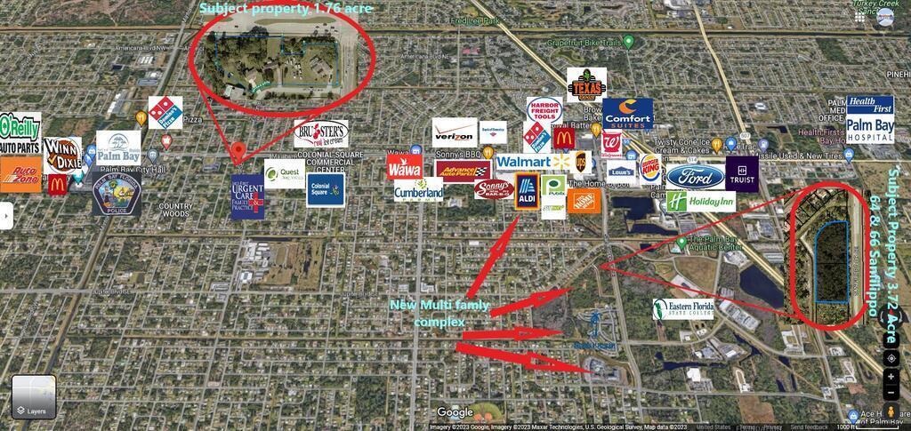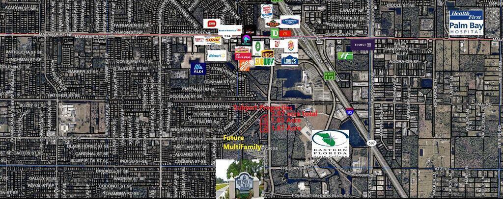 Don't miss out on this exceptional commercial location with endless possibilities! Situated right behind a future multifamily property slated for a complex of 240 to 300 units, this site is ideal for various ventures including office/retail, restaurants, self-storage, medical facilities, or mixed-use development. Adjacent property also available on Crexi, adding another 1.87 acres for a total of 3.72 acres, perfect for a strip center, car wash, or mini-storage, offering excellent exposure at the main gateway to the south section of booming Palm Bay. With the residential boom in full swing, commercial properties are in high demand, making this an ideal opportunity for long-term income generation. Joint venture and owner financing options available with 30% down. Explore this and other commercial and industrial properties ranging from 1/2 an acre to 100 acres in various locations. Don't wait - seize this investment opportunity today!