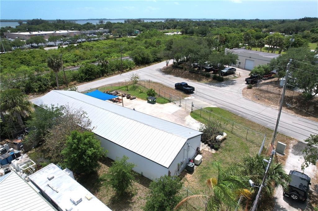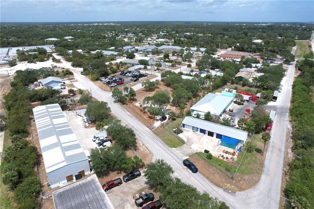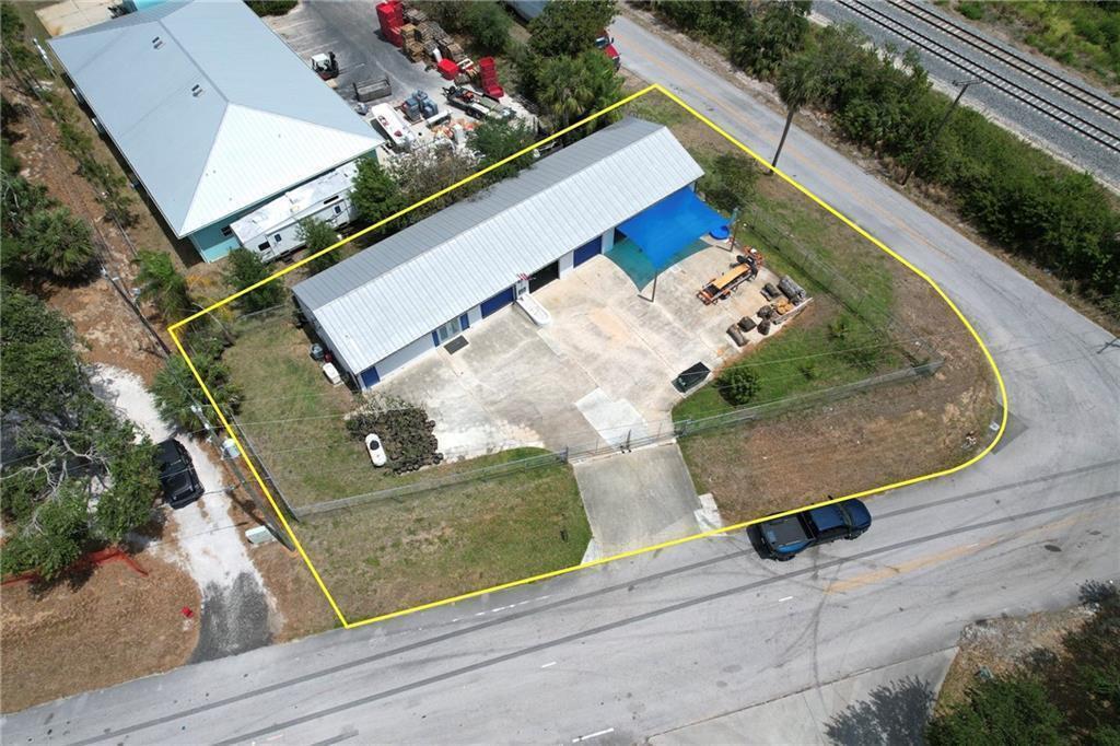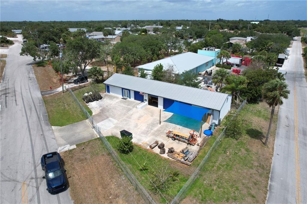 Corner commercial property located just off Old Dixie Highway in Sebastian offers generous parking space, almost 2,500 square feet of warehouse and flex space, and a backup Generac generator with Ameri-Gas tank. High ceilings, multiple bays, a large area for an office, and a restroom make this a very versatile space. Added security is provided by a 6' barbed fence with gate, and security system with lights.