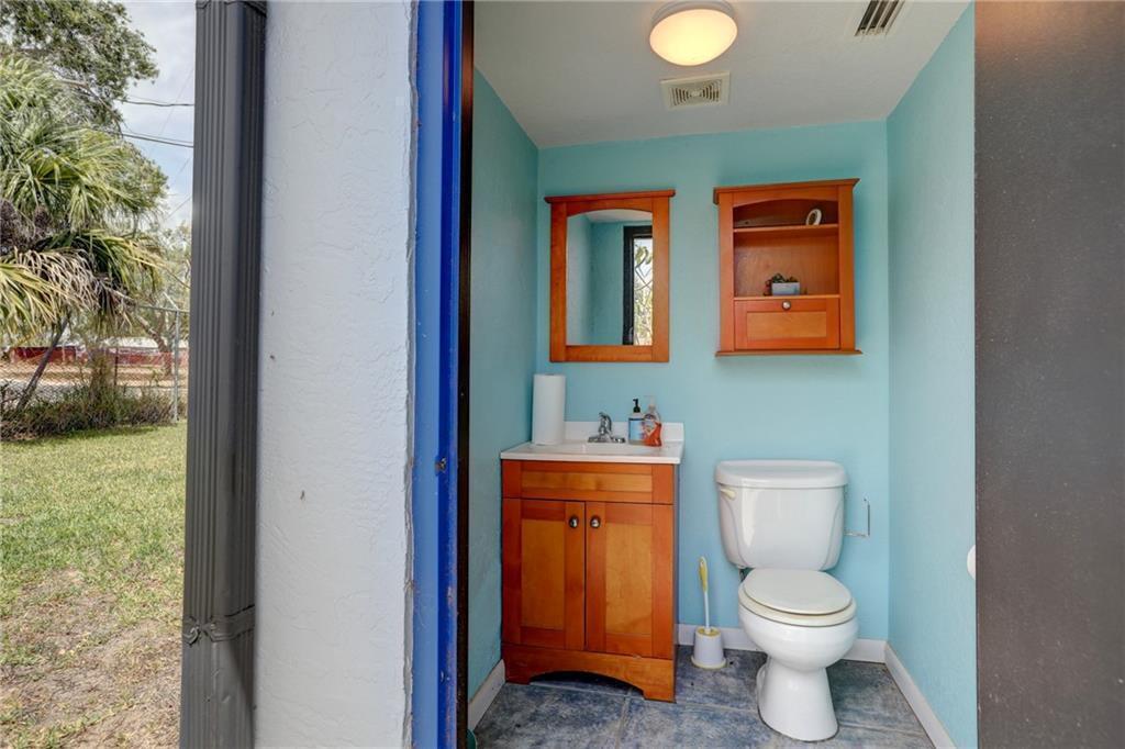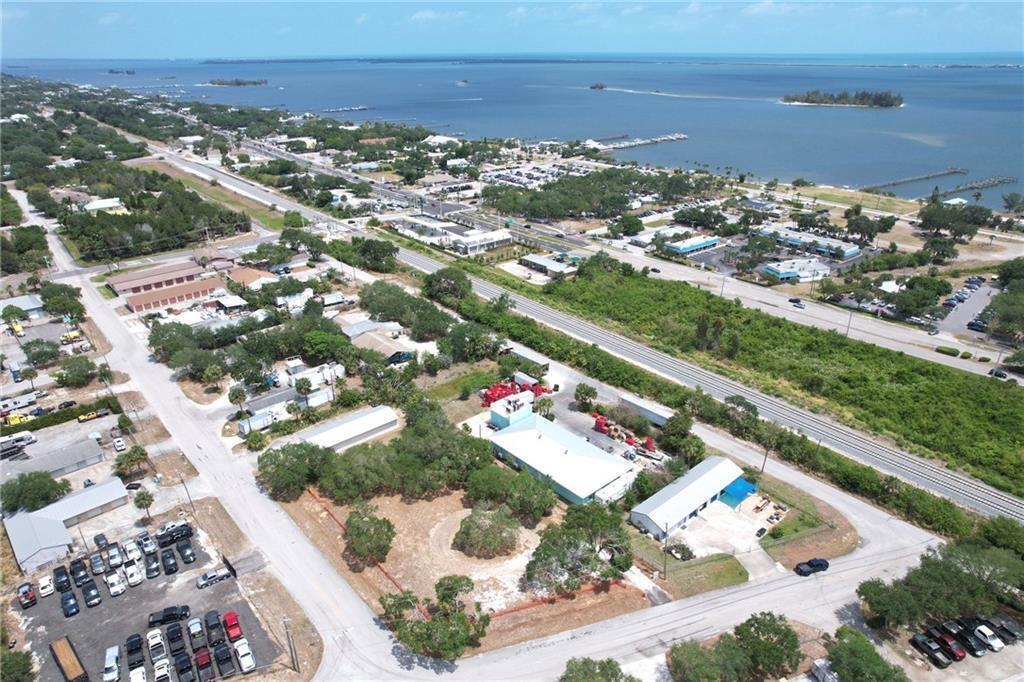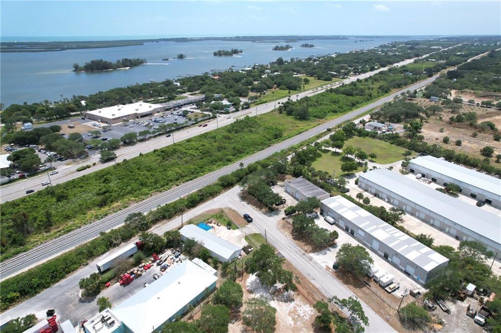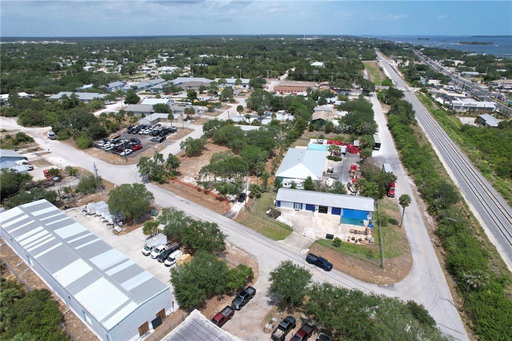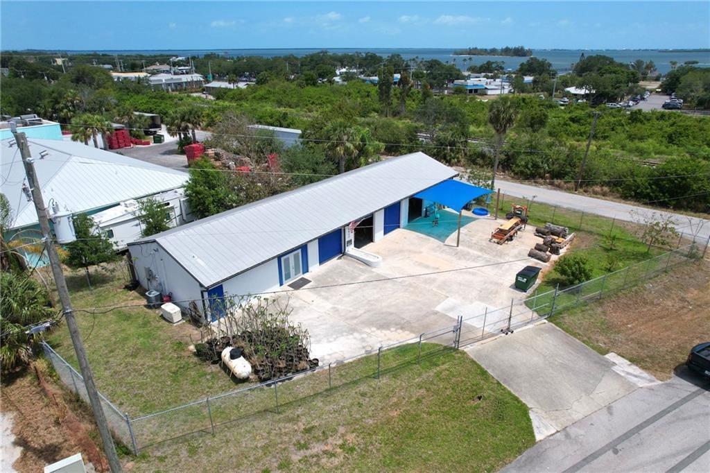 Corner commercial property located just off Old Dixie Highway in Sebastian offers generous parking space, almost 2,500 square feet of warehouse and flex space, and a backup Generac generator with Ameri-Gas tank. High ceilings, multiple bays, a large area for an office, and a restroom make this a very versatile space. Added security is provided by a 6' barbed fence with gate, and security system with lights.