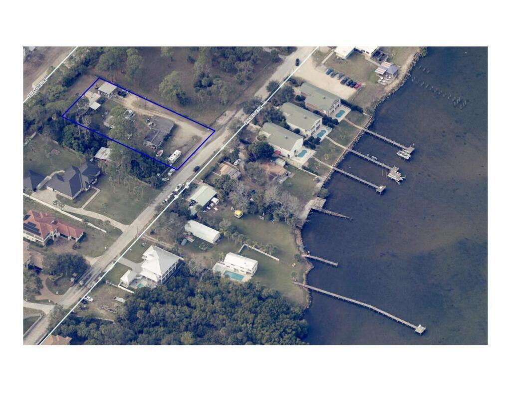 RIVER LIVING!!! .69 Acre lot 120ft x 250ft across the street from the Indian River. The building towards the Front / East of the property is concrete block and was a restaurant previous years with restrooms and septic system and its own power. The Back / West end of the property has Mobile home with 2 Bed / 2 bath / Addition / Front Porch / Septic system & Power. There is also a large pole barn in the property and shed.