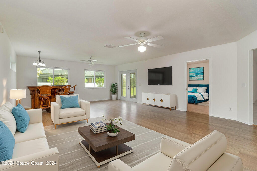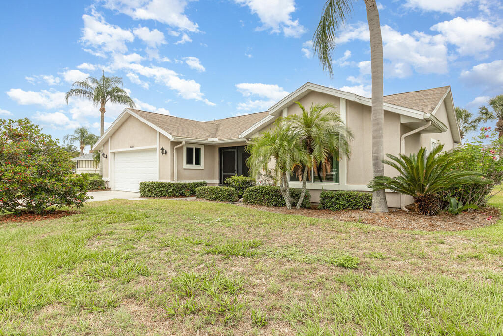 Located in a resort-style country club community that offers top-notch amenities, this expanded Austin model is a must-see. This updated 4-bed, 2-bath residence is perfect for entertaining or extended visits, and features a versatile 4th bedroom, great for an office or den. Enjoy peace of mind with impact windows, doors, and sun tunnels throughout. The spacious family room is enhanced with brand new electric blinds. The home is freshly painted and boasts tile and laminate flooring in most areas, with carpet only in the closets. The nicely sized kitchen features Corian counters. This home is ready for you to move in and start making memories. Home to over 600 Military Veterans, Indian River Colony Club is a Private 55+ Country Club community with an extensive maintenance program for each home. It includes an18-hole golf course, fine dining restaurant with an executive chef & the 19th Hole restaurant and bar, fitness center, heated swimming pool, tennis courts, croquet,