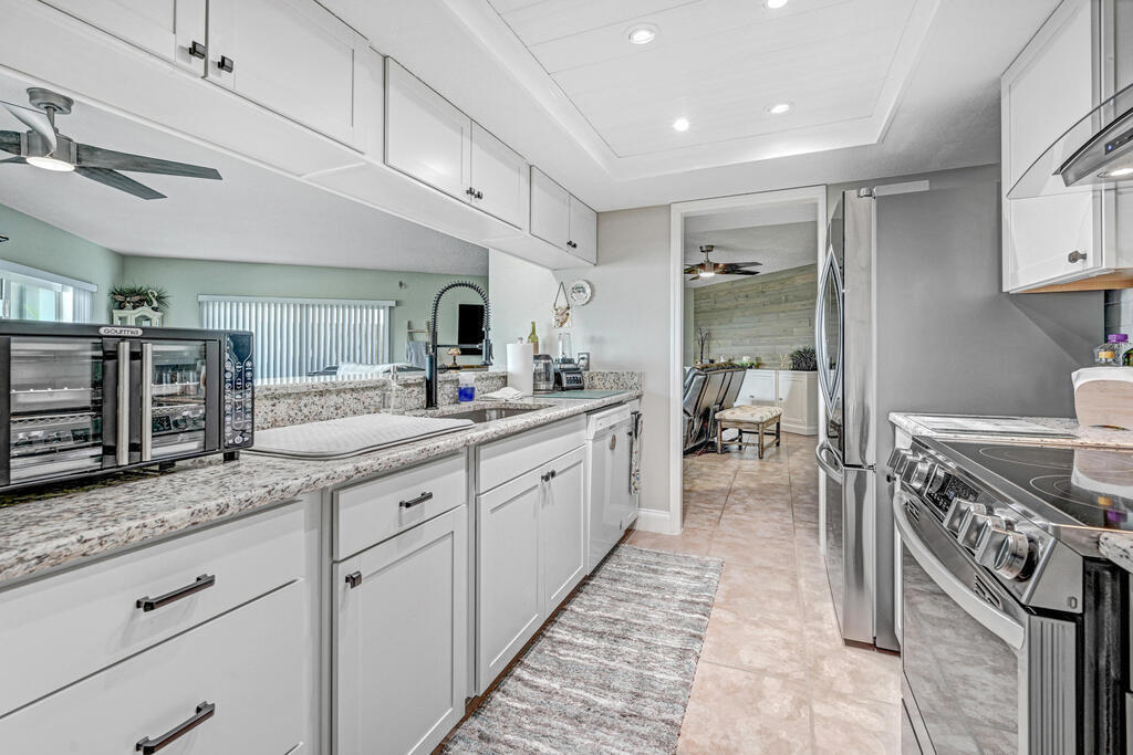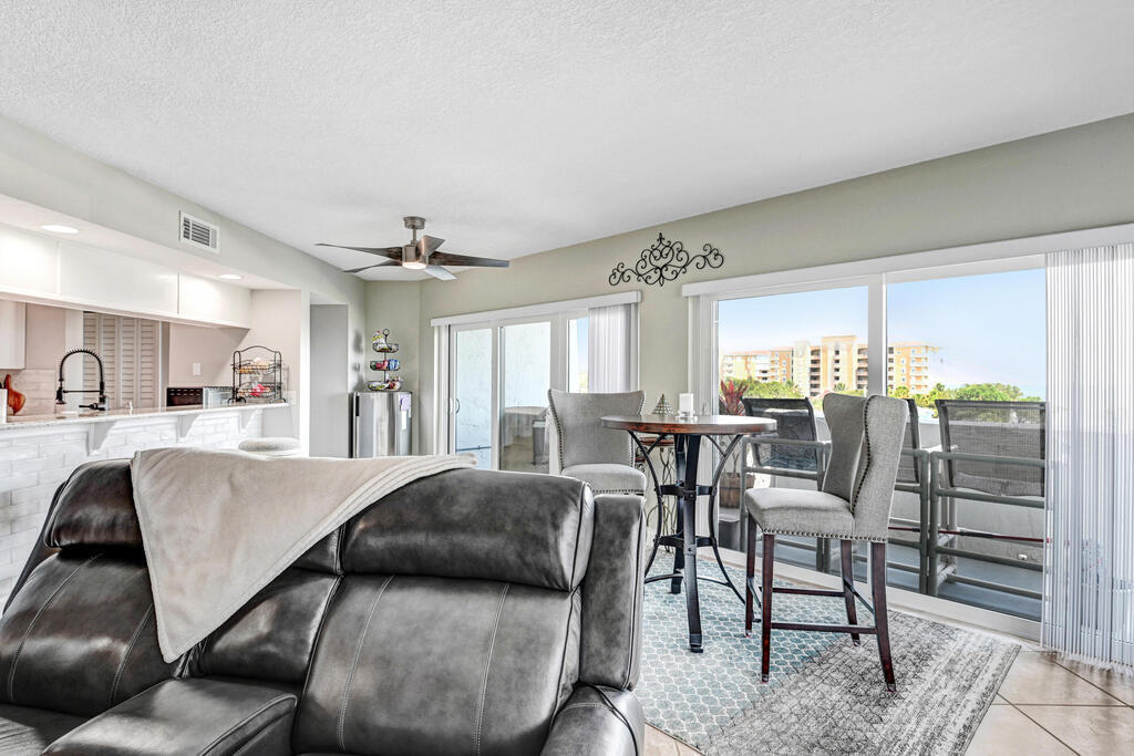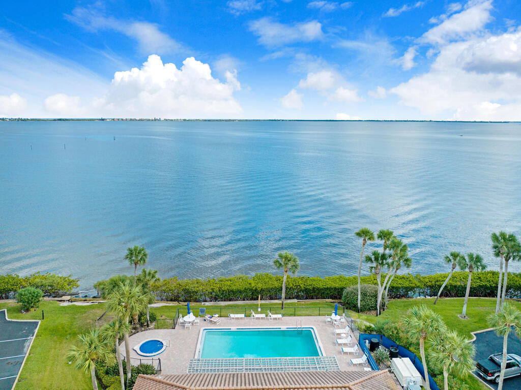 PRICE IMPROVEMENT! Motivated Seller. PRIVATE MARINA with DEEDED BOAT SLIP. Experience waterfront living with breathtaking views of the Indian River. This updated 2 bedroom,2 bathroom corner unit features a spacious wrap-around balcony, perfect for watching spectacular rocket launches and sunrises. Step inside to a light-filled, open floor plan with a generous living area, ideal for entertaining. The space is accentuated by three large sliding doors offering picturesque views of the marina and river.The kitchen is a chef's delight, boasting beautiful upgrades including granite countertops, a large kitchen bar, white shaker cabinets, a new stove, convection oven, and refrigerator. The master bedroom is a serene retreat with a large slider opening to your private balcony overlooking the marina. The master bathroom is elegantly appointed with granite counters, new wall tile, and tasteful fixtures. This gated community includes a pool, spa, sauna, gym, tennis courts and more.