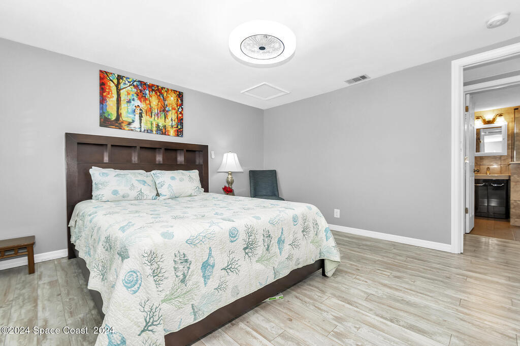 Price Correction! Priced to Sell!! New construction 2022, gutted to the studs, new plumbing, new electric, new walls, headers, beams, spray foam insulation, impact windows and sliders, see feature sheet, essentially 2 homes on separate electric meters. Consider it as a 5 bedroom home or two homes. Downstairs 3 bedrooms, 3 baths and Upstairs 2 bedrooms, 1 bath. Whatever you decided to use this property for you will not be disappointed. It would serve beautifully as a family home with extra income from the upstairs apartment, adult children still living at home, a second home, or Airbnb. A fabulous location, only 6 blocks to the beach and next door to a riverfront park for added unobstructed views of the river and islands! Currently being used as an Airbnb! The walkability to downtown Cocoa Beach with shopping, restaurants, stores, library, post office, etc. makes it more desirable. Quiet and tucked away yet so close to all that Cocoa Beach has to offer! Boaters Dream: