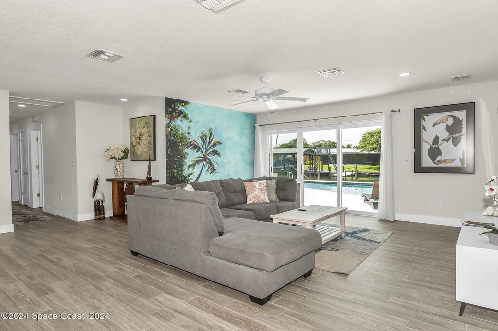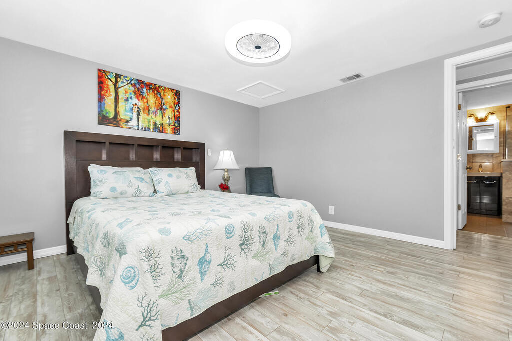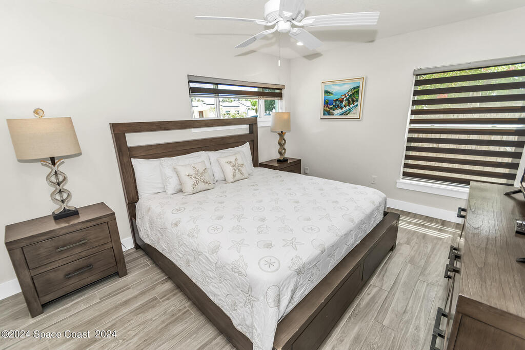 New construction 2022, gutted to the studs, new plumbing, new electric, new walls, headers, beams, spray foam insulation, impact windows and sliders, see feature sheet, essentially 2 homes on separate electric meters. Consider it as a 5 bedroom home or two homes. Downstairs 3 bedrooms, 3 baths and Upstairs 2 bedrooms, 1 bath. Whatever you decided to use this property for you will not be disappointed. It would serve beautifully as a family home with extra income from the upstairs apartment, adult children still living at home, a second home, or Airbnb. A fabulous location, only 6 blocks to the beach and next door to a riverfront park for added unobstructed views of the river and islands! Currently being used as an Airbnb! The walkability to downtown Cocoa Beach with shopping, restaurants, stores, library, post office, etc. makes it more desirable. Quiet and tucked away yet so close to all that Cocoa Beach has to offer! Boaters Dream: Deep water and easy access to the open river!!