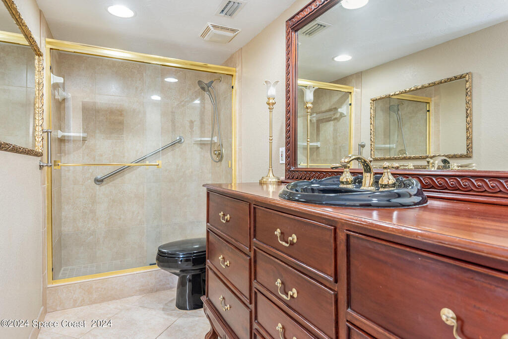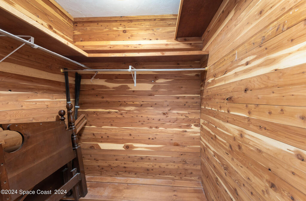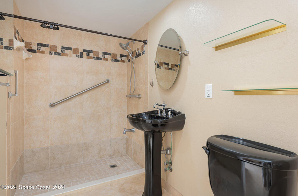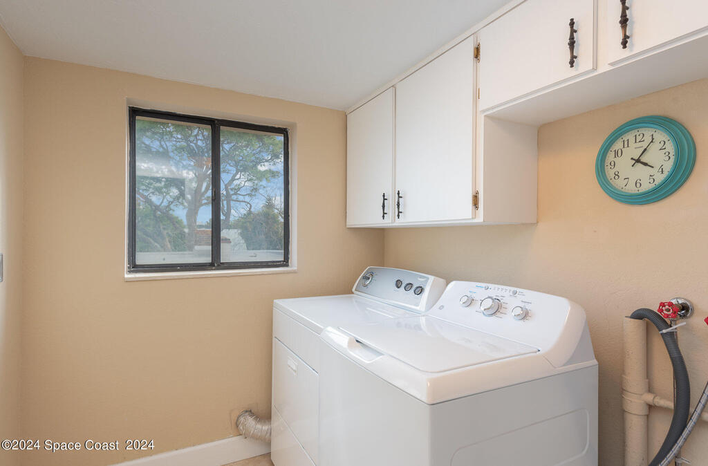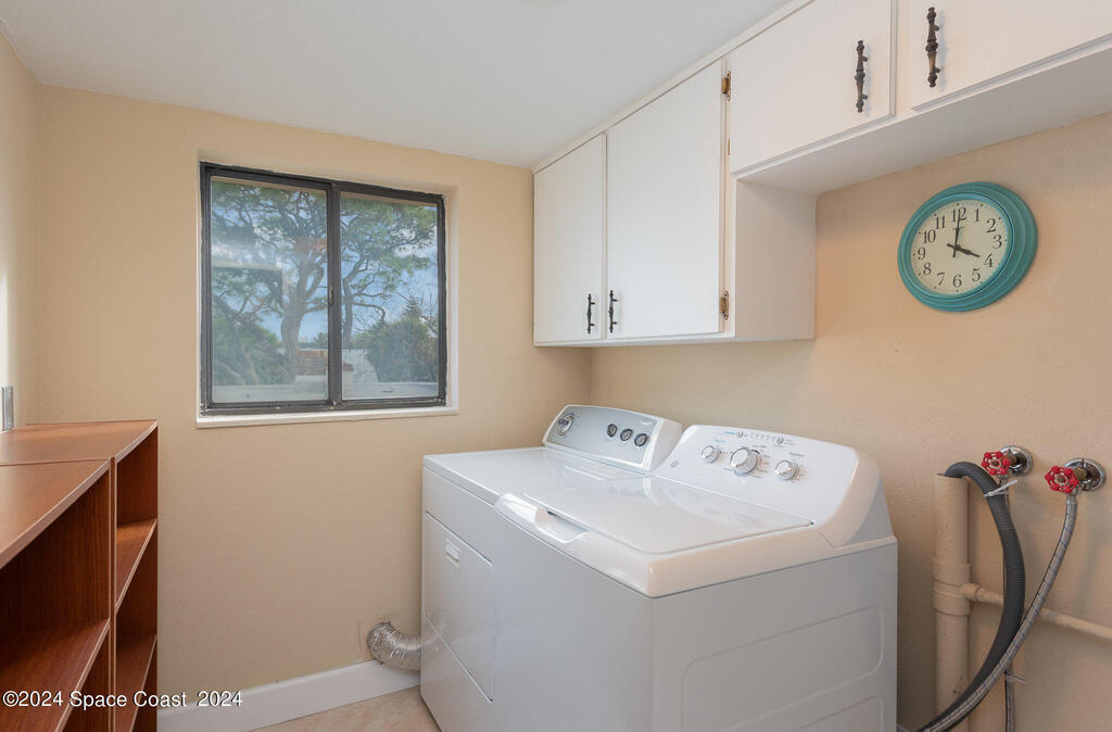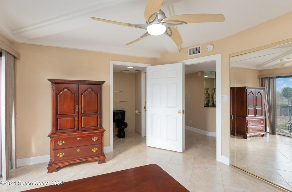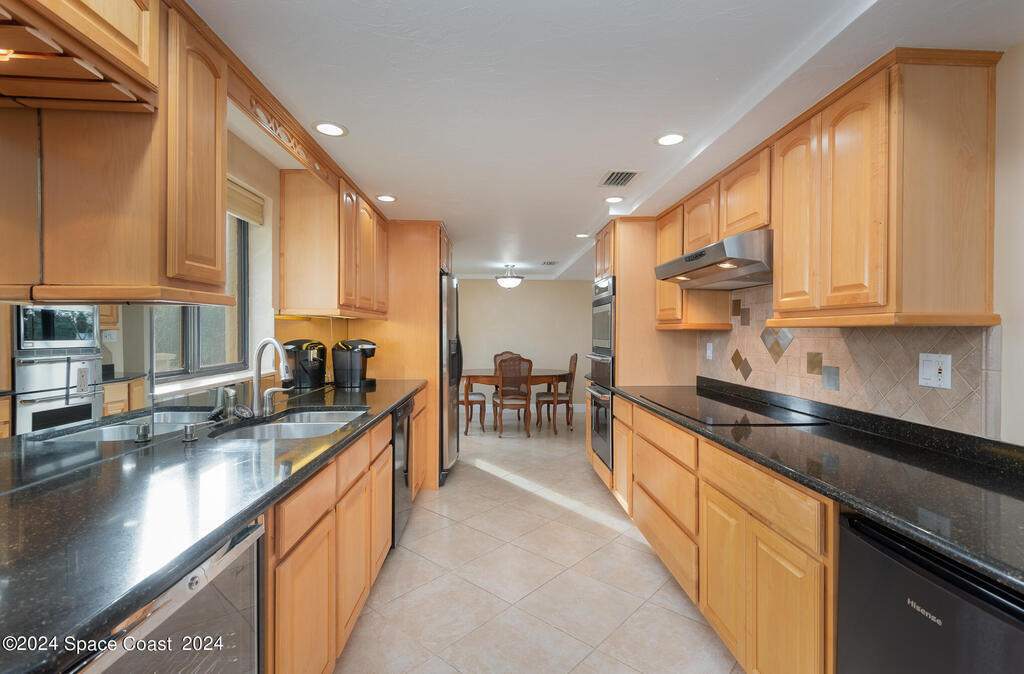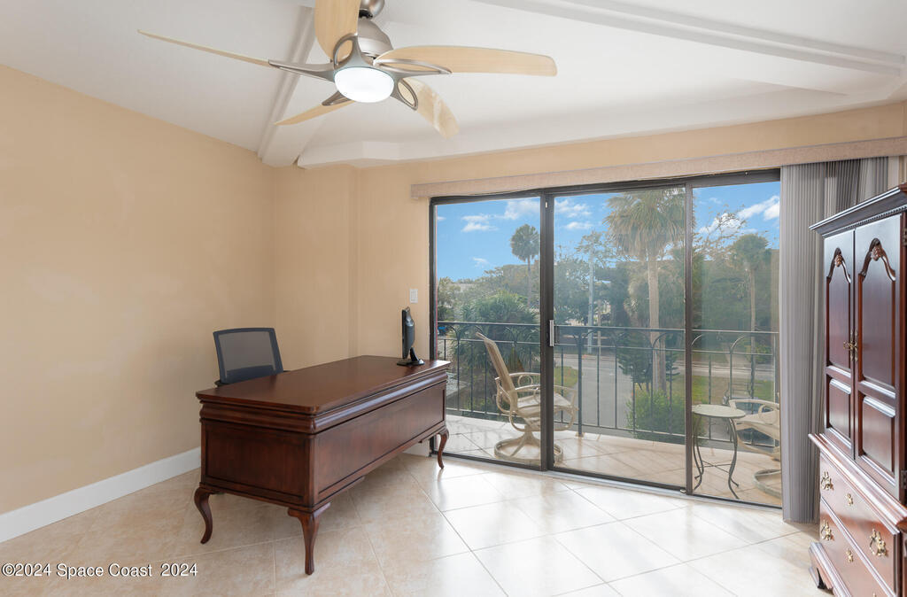 Enjoy breathtaking views of the Intracoastal waterway, rocket launches and gorgeous sunrises from this beautifully updated 2 Bedroom,2 Bath South End Unit. New roof 2024. The spacious living area has been designed with attention to detail. 18-inch tile set on a diagonal throughout. Sound proofing has been achieved with cork board underlayment. The kitchen features Maple cabinetry, pull out drawers & granite counter tops with breakfast bar. Appliances include a 5 burner Thermador cook top and stainless convection oven, microwave, refrigerator, dishwasher, wine cooler and undercounter refrigerator. Primary bedroom includes a cedar lined walk-in closet. Both baths have been updated and feature tiled walk-in showers. Assigned underground parking is included. Enjoy the swimming pool and fishing dock with friends and family while overlooking the Indian River. Walking distance to Historic Downtown Titusville.