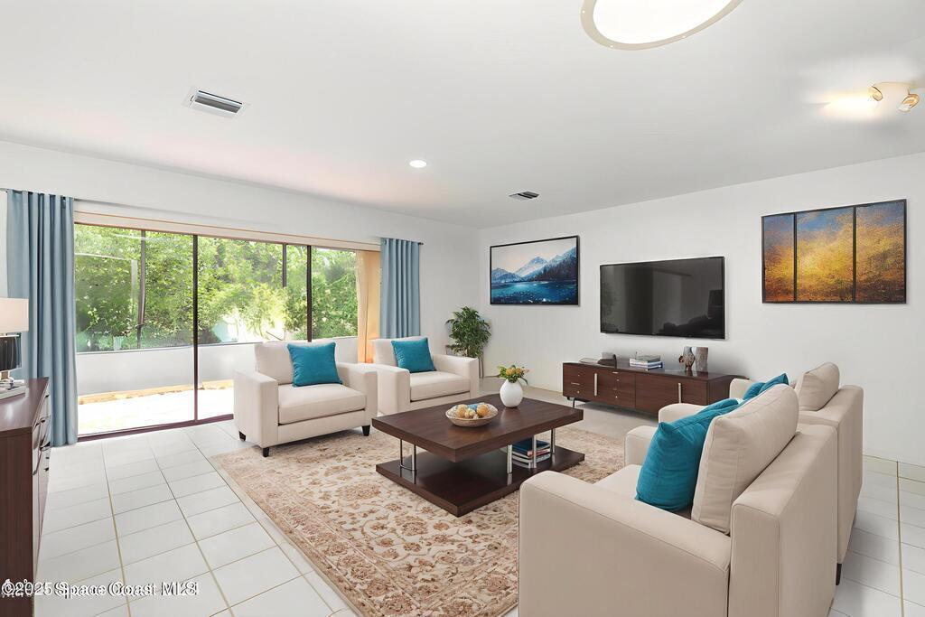 This expanded Austin model is set within a resort-style country club community, where top-notch amenities create an exceptional Florida lifestyle. From the moment you arrive, the home's striking curb appeal stands out with a newly finished AmVet concrete coated driveway and garage floor. Step inside to discover an open, airy interior filled with natural light. Vaulted ceilings and solar tubes enhance the spacious feel, creating a bright and welcoming atmosphere throughout. The split-bedroom design offers ideal privacy, especially in the guest suite, which functions like its own retreat. This suite includes two versatile rooms, a full bathroom, and a private entryway, all secured by a pocket door for added comfort and seclusion.The large kitchen is a true highlight, with abundant cabinetry and a spacious breakfast bar, perfect for casual meals or entertaining guests. The flow of the space creates an inviting atmosphere ideal for gatherings.