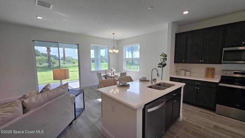 READY NOW! MOVE IN READY! The Biscayne floor plan is spacious and inviting. Trussed outside living space is great for entertaining or relaxing. Kitchen is large with tile backsplash. Owners Suite has double sinks and tiled shower. Irrigation with a deep well. Three bedrooms. Two bathrooms. Three car garage!This new home includes one full year of builder's transferable warranty coverage, and a 10-year limited structural warranty.