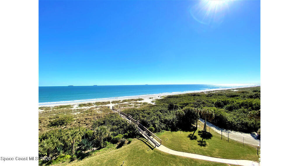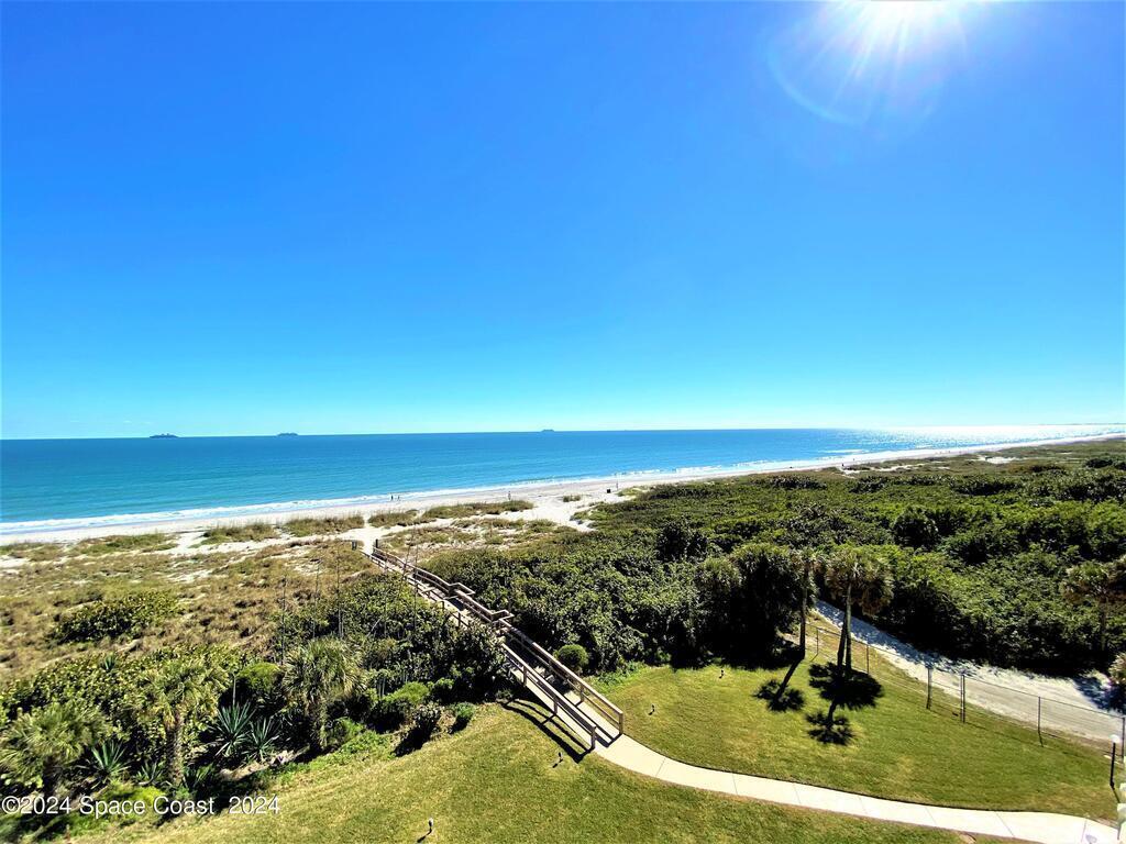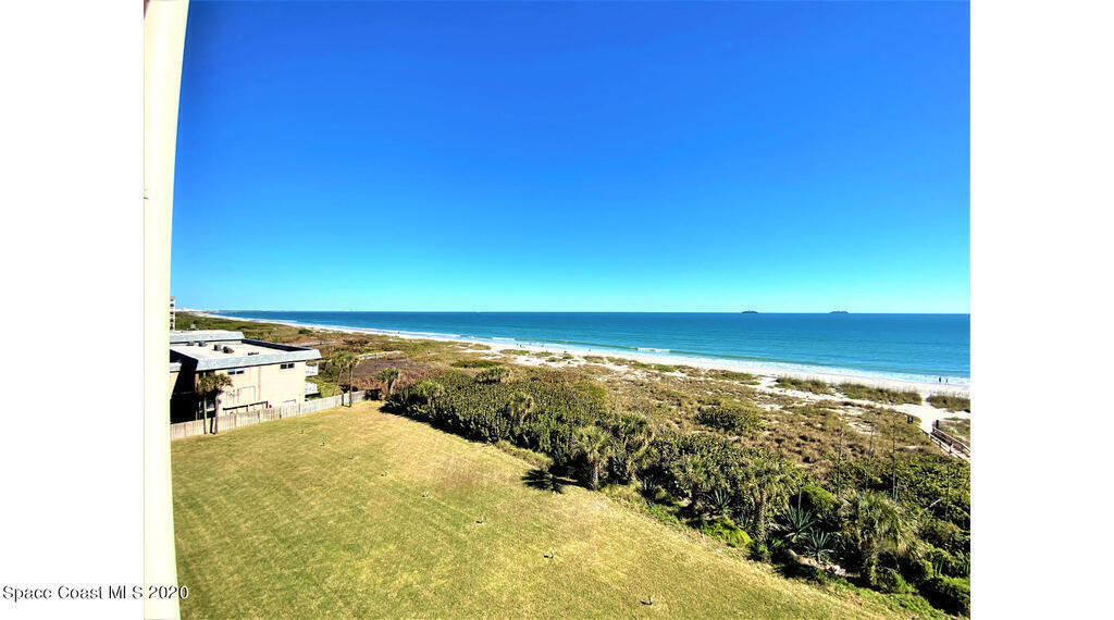 Beautiful beachfront living with panoramic ocean views from the sixth floor oversized balcony. Enjoy all the comforts of home with a fully equipped kitchen, a washer and dryer in unit, and more! This property includes one king bed in the primary bedroom and a queen in the guest. The spacious floor plan includes an eat-in kitchen, large living and dining room overlooking the ocean, a master suite with a walk-in shower and his/her sinks. This is the perfect beach getaway! The Windward East complex offers amenities such as a heated swimming pool and a sauna for your leisure. Great location just north of Downtown Cocoa Beach, easy access to area amenities, and a short drive to Orlando. Electric is included up to a $100.