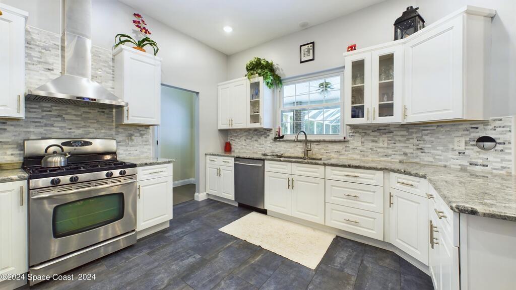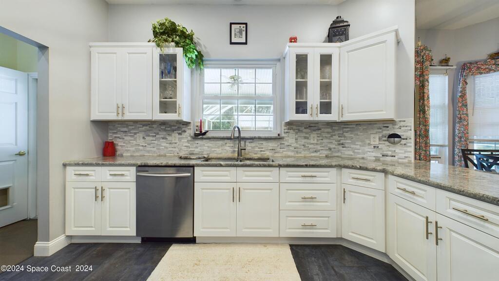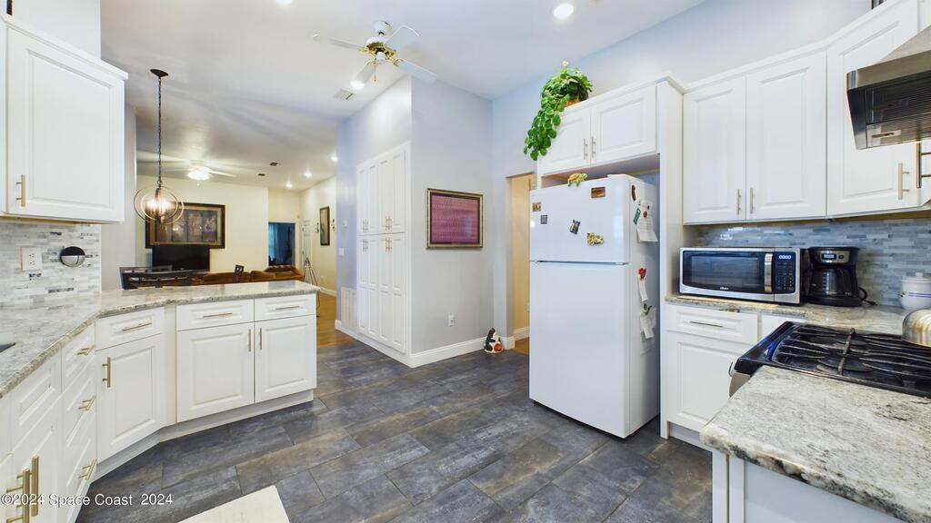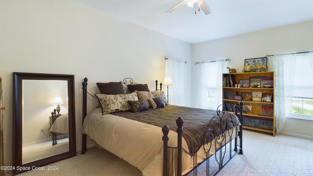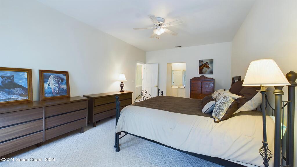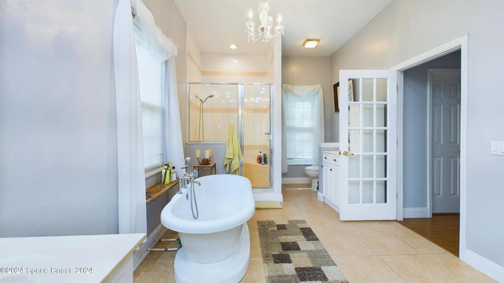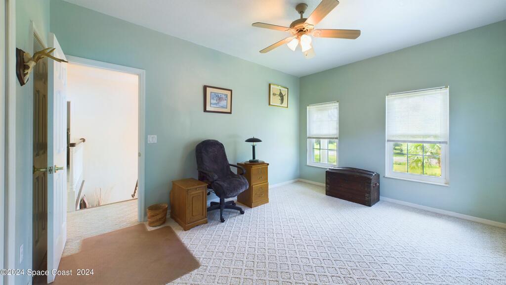 This stunning Brick Colonial-style home sits on 2.15 private wooded acres in the exclusive Windover neighborhood, featuring 4 bedrooms, 2.5 baths, and real wood floors throughout. Enjoy the sunken family room with a cozy fireplace, and a luxurious master suite with an adjacent study/den, and a master bath offering his and hers closets. The remodeled eat-in kitchen boasts a large island, pantry, and all appliances included. Additional highlights include a formal dining room, formal living room, and a dedicated laundry room, & central vacuum.Outside, relax by the screened-in pool or take advantage of the expansive 1200 sq. ft. detached garage/workshop, complete with 220 electric, a loft, and a half bath, ideal for boats, RVs, or a 5th wheel. The circular and concrete driveways offer ample parking. Enjoy Windover Park, and proximity to the Kennedy Space Center, Canaveral National Seashore, and Cocoa Beach. No flood zone, city water, sprinkler system, and a new roof (2023). Easy to show