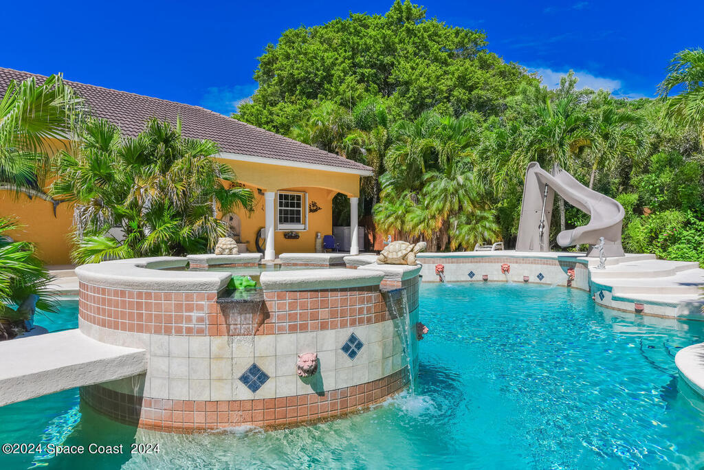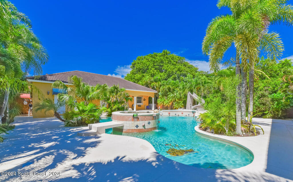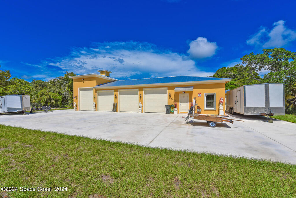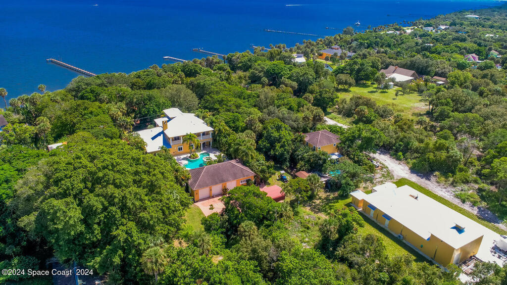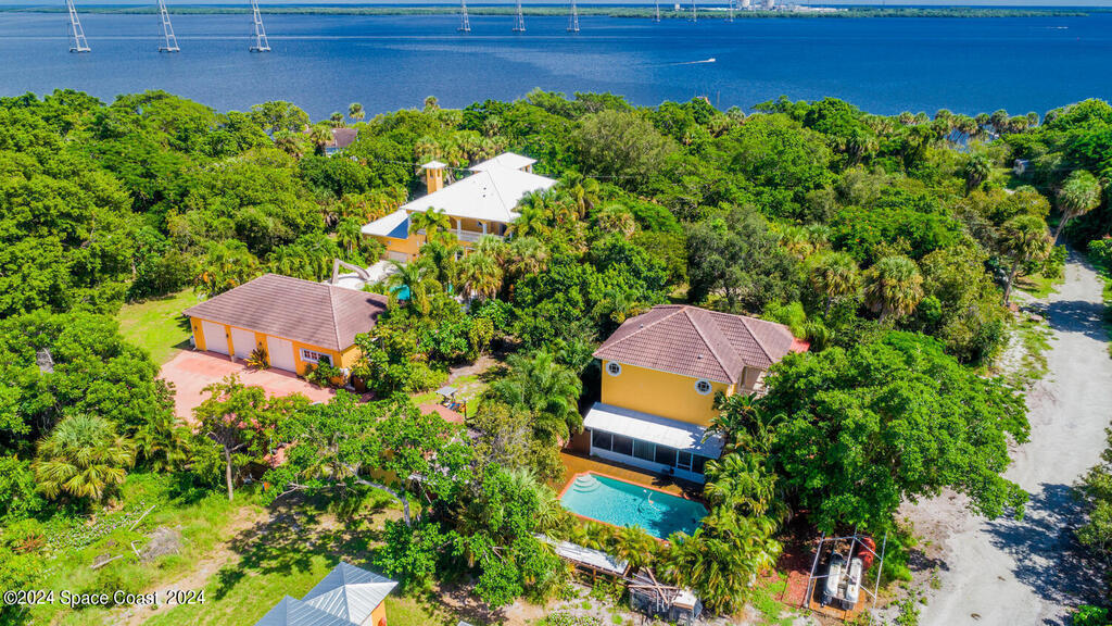 Estate Home with Guest House sitting on a 7.25 Acre parcel of Riverfront land, w/ 460' walk out dock. Very Private Estate Home with attached 2 car garage set back over 250'. Plus 2 Separate Large Garages perfect for Car collection ,3 car detached garage with A/C ,gym & bath, CBS 32X55, plus a new 5 car garage 72' X 32' with apartment , full A/C . High & Dry w/30 ft elevation ''per owner''. Main House 4600 under a/c 6,400 total. 10 ft ceiling Height,3 story, 4 bed, 4 bath, Granite Counters Kitchen & Baths, Double Oven, Media Room, Covered Balconies front and rear, Newer Aluminum Roof, Impact Windows 2nd & 3rd Floors, Electric Hurricane Panels first floor, 60,000 gallon free form resort salt water pool w/Spa , Horses OK