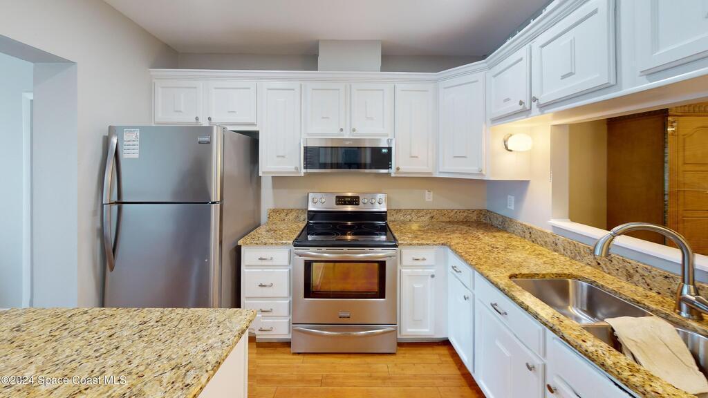 WONDERFUL COMMUNITY !!Spectacular Golf Course View. Located on the #18 hole of the Green. This lovely 3/2 bedroom has updated eat in kitchen, solid surface countertops, and stainless appliances, Newer Bamboo flooring with open floorplan. Laundry room with NEWER washer and dryer. The unit is a NICE end unit! Hurry this one will not last!! BEAUTIFUL UNIT and BEAUTIFUL LOCATION!!! Close to shopping, restaurants and so much more!!
