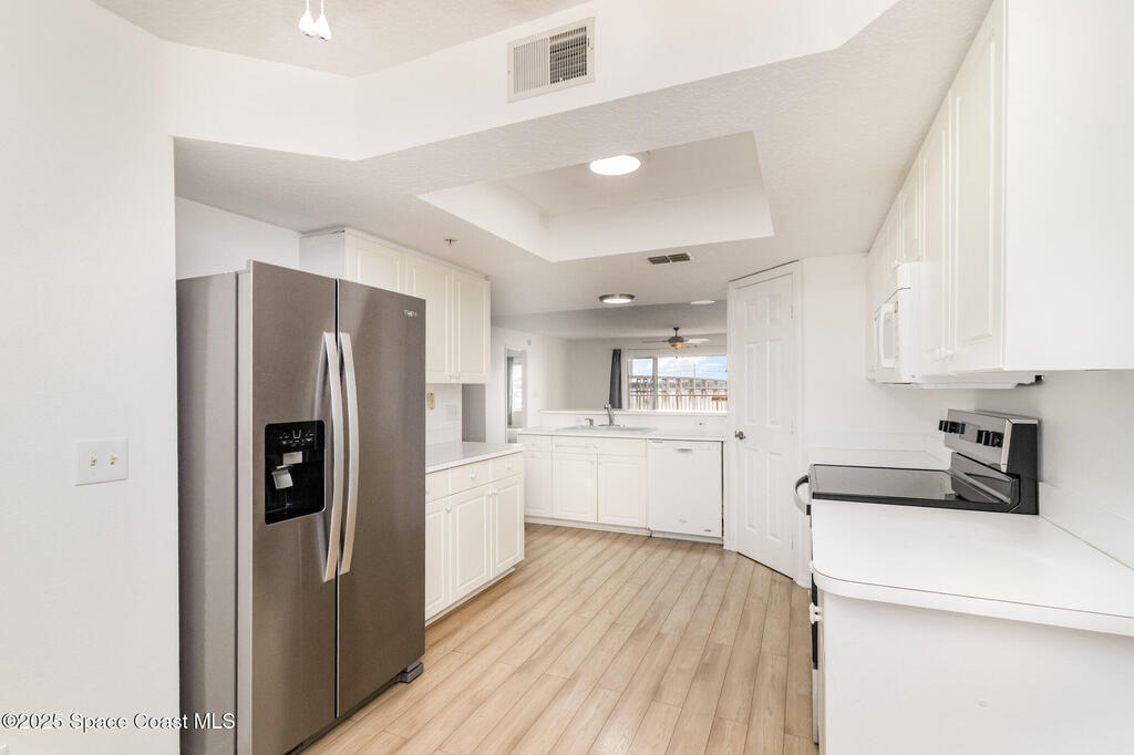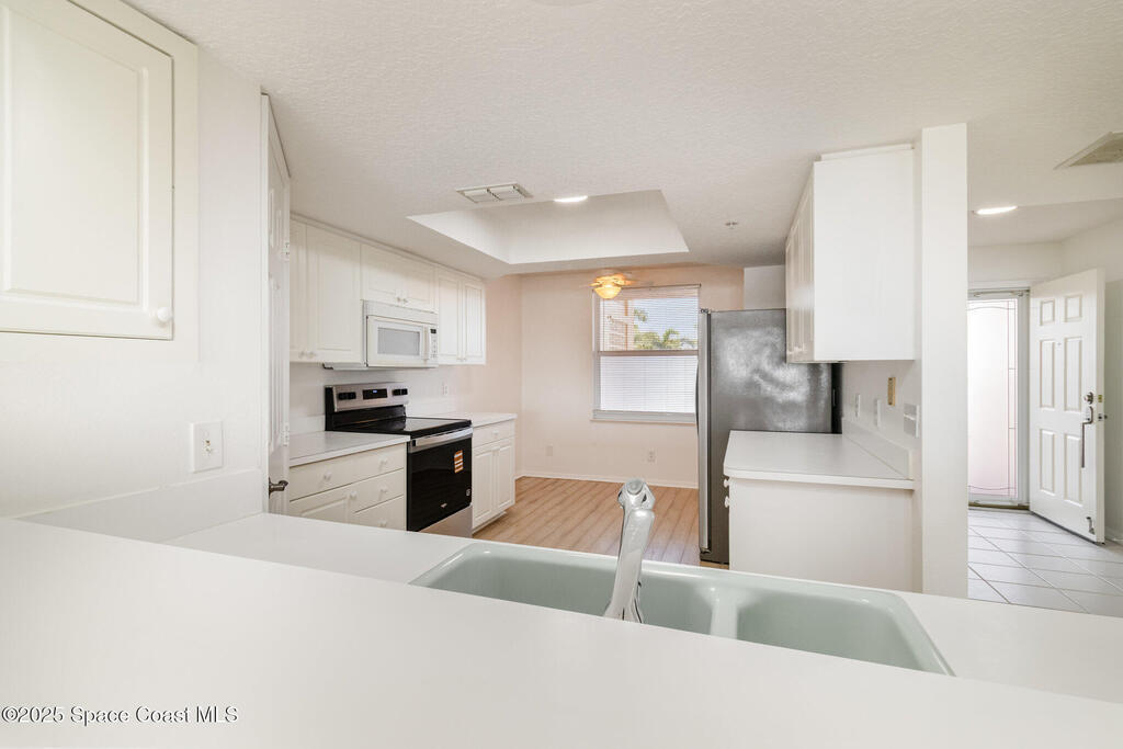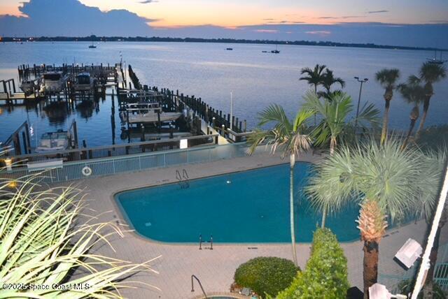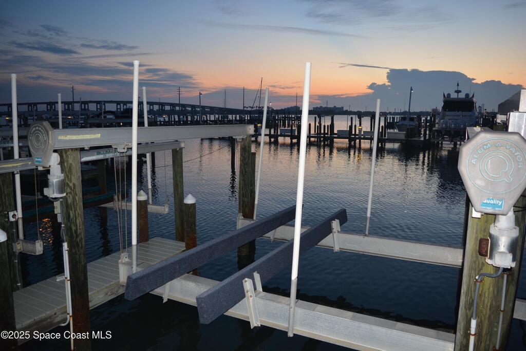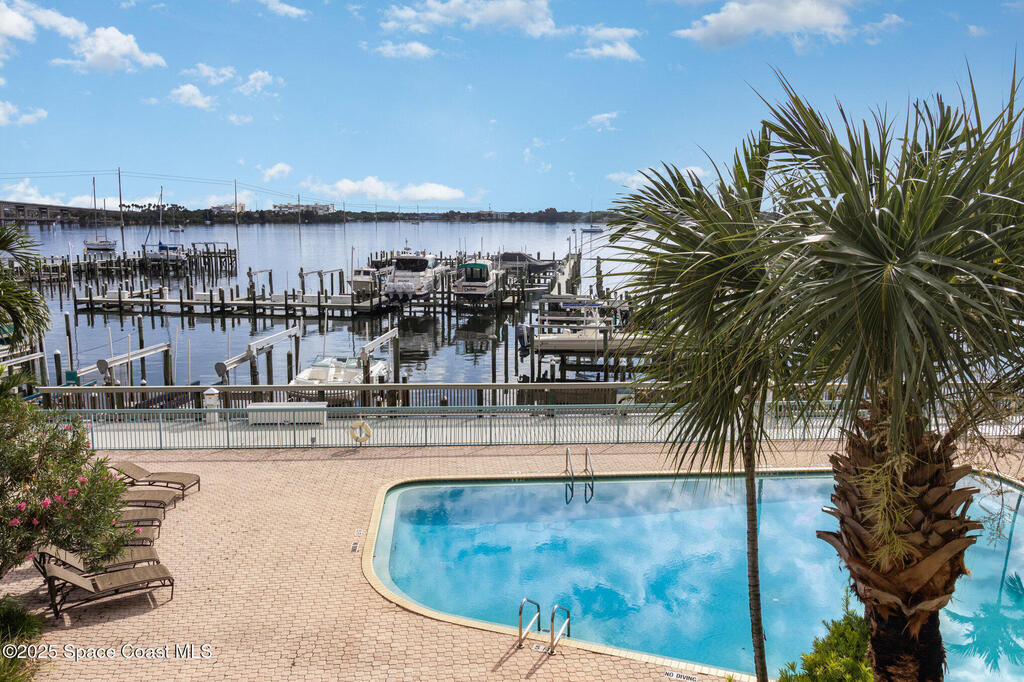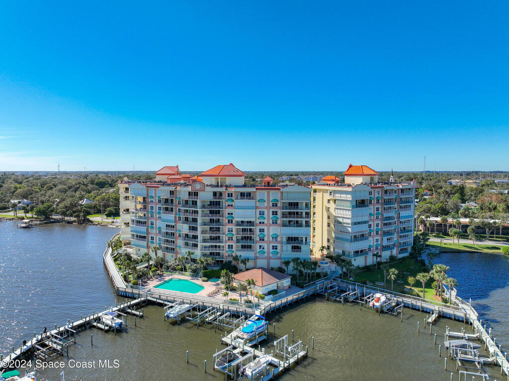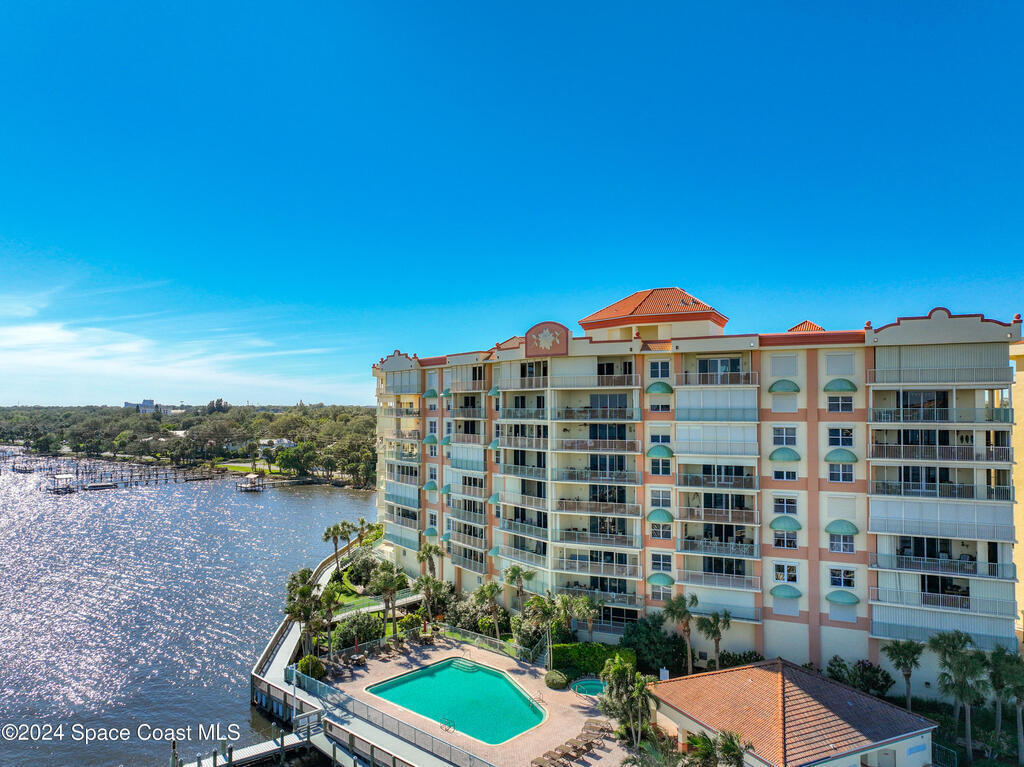 Experience sunrises, launches, fireworks & boat parades like never before from your own balcony. Open floor plan, Large 2 bedroom/2bath waterfront condo with direct water access. Sale includes your own 30ft deep water boat slip (#38) and private garage (302B). Freshly painted throughout; new updated kitchen ceiling light and stainless steel stove; cleaned carpeting; other spruce ups as well. Refreshed master bath. Jetted soaking bathtub; private shower and toilet stall. New bathroom mirrors. Light, bright oversized living-dining-office area with a great view out from the kitchen to the River. Move/in ready. Resort-style amenities include: heated pool, spa, riverside boardwalk fitness center, sauna, tennis/basketball/pickleball court, club room with pool table, library and kitchen. This active community is ready to welcome you to this riverside paradise! REDUCED PRICE $495k!!!