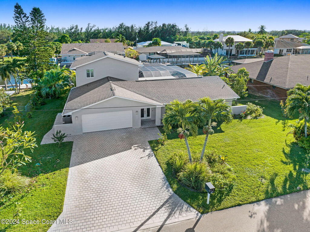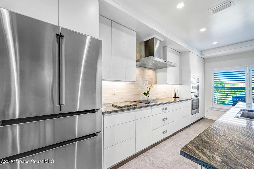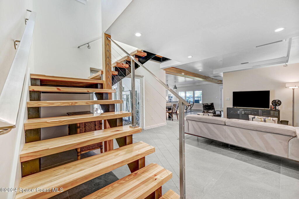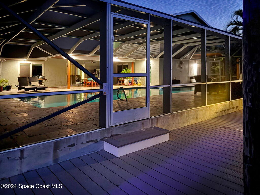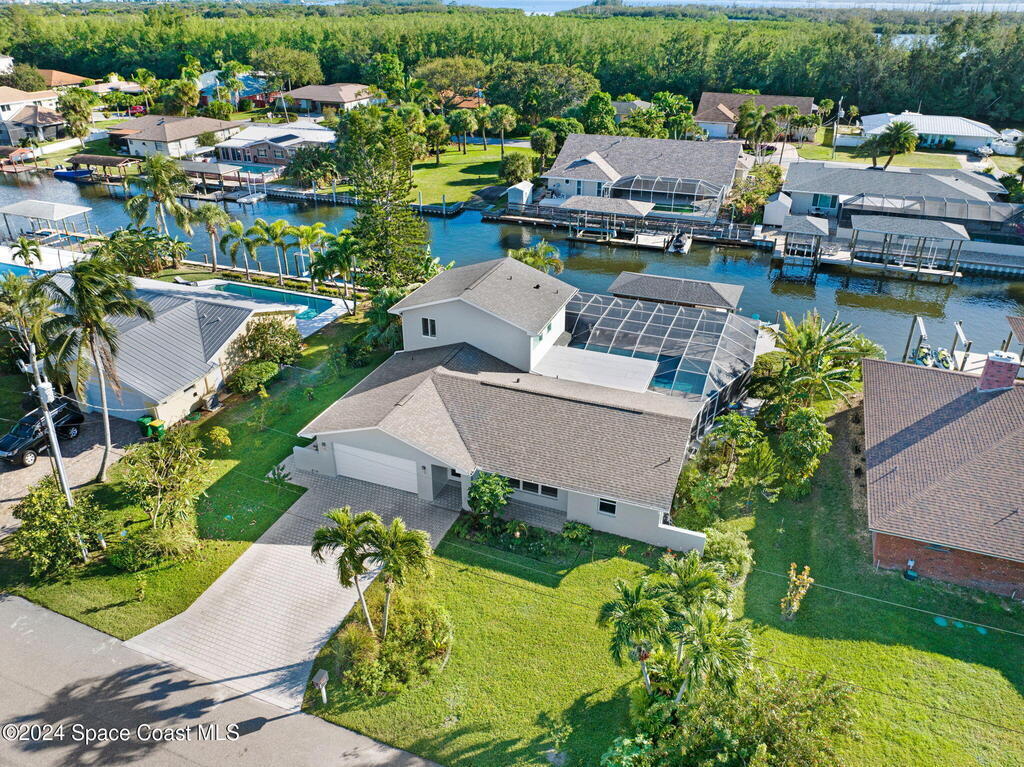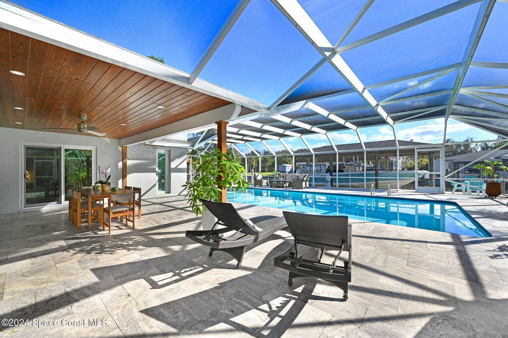 Waterfront Navigable Pool Home! Welcome to this lovely modern transitional waterfront home featuring natural wood-tones with a combination of concrete, stainless steel and marine grade finishes. Updated throughout featuring quartzite countertops, large tile floors, Grohe bathroom hardware with carefully crafted finishes exudes the beauty and care in the updates. A Travertine deck surrounds a stunning 40' x 15' pool. New 98' seawall and wide dock provides for a comfortable seating area on the water with a boathouse and a 13,000 pound boat lift. This 4 bedroom home Features 2 master suites / 2 master bathrooms, w 2 guest-rooms & private lanais. The upper lanai has marine grade, stainless steel railings, and tile floors. The lower lanai has beautifully finished wood ceilings surrounding the entire exterior perimeter of the residence. Trayed ceilings with high-quality LED lighting, floating staircase, & marine grade railings. New low E PGT monolithic glass impact rated doors/windows...