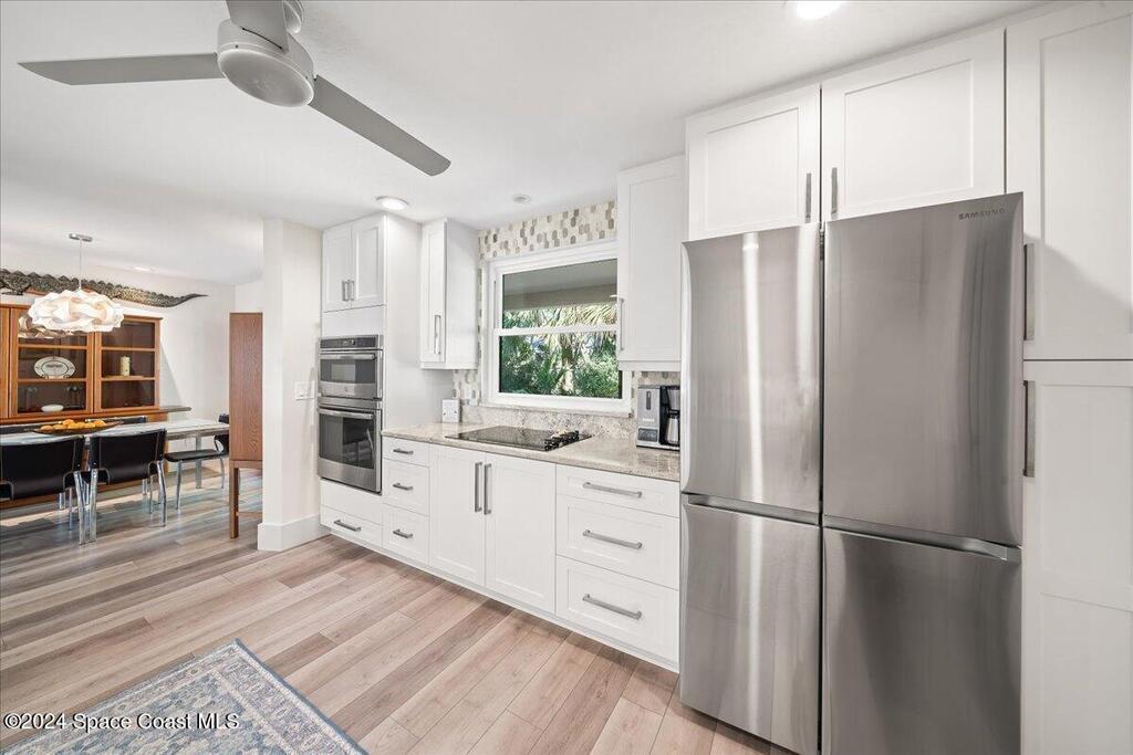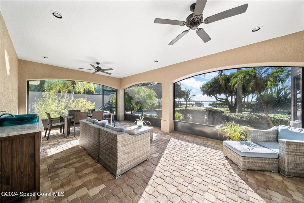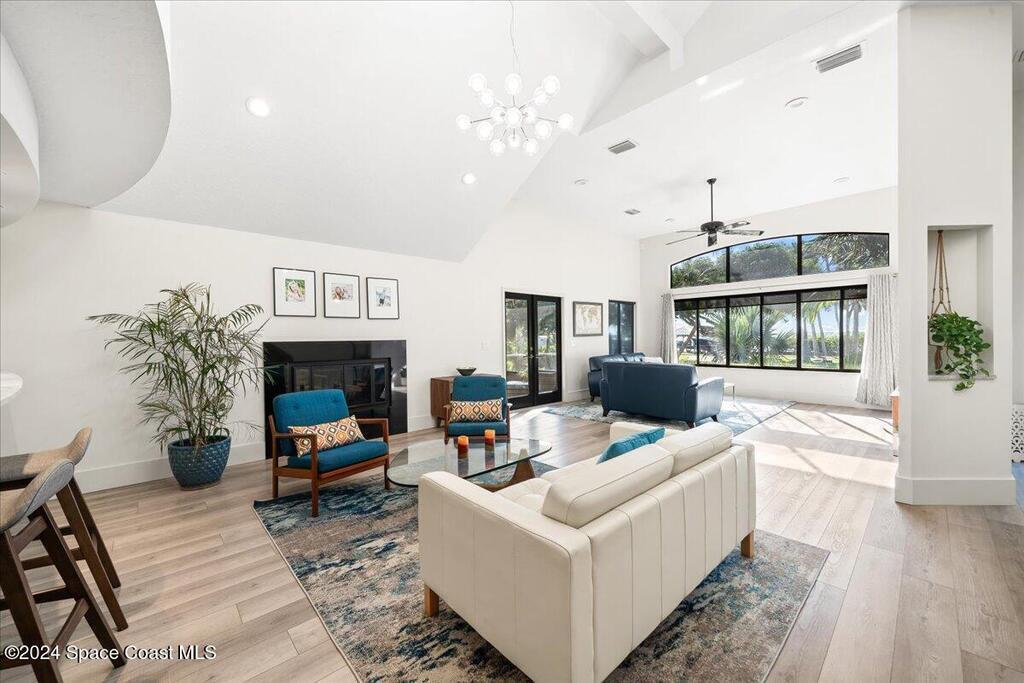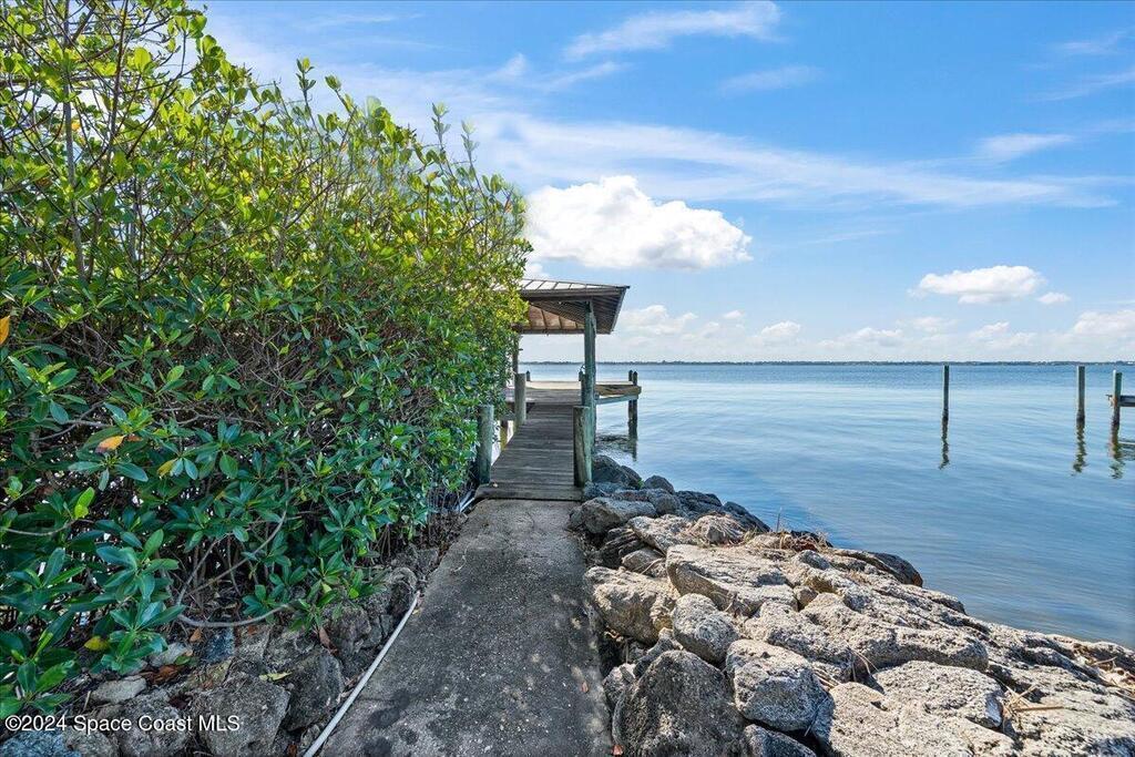 Back on the market with a new and improved price! Seize this opportunity to experience the finest in waterfront living with this updated contemporary home, perfectly nestled on one of the most unique and desirable settings in Brevard County, South Tropical Trail. Located directly on the Indian River - the wide, ocean-access intracoastal waterway - this 3-bedroom, 3.5-bath home sits on an oversized lot with 120 feet of prime water frontage.Enjoy breathtaking sunsets, world-class fishing, and endless water activities from your very own large covered dock with boat lift. The expansive open floor plan of the home is bathed in natural light, offering spectacular views of the water from nearly every room. Vaulted ceilings and generous windows enhance the airy, inviting feel of the space.The spacious master suite, located on the second floor, provides a private retreat, while an open loft area adds versatile bonus space for your personal needs.