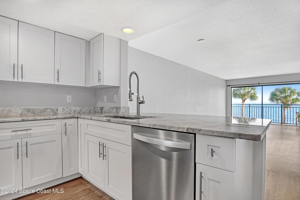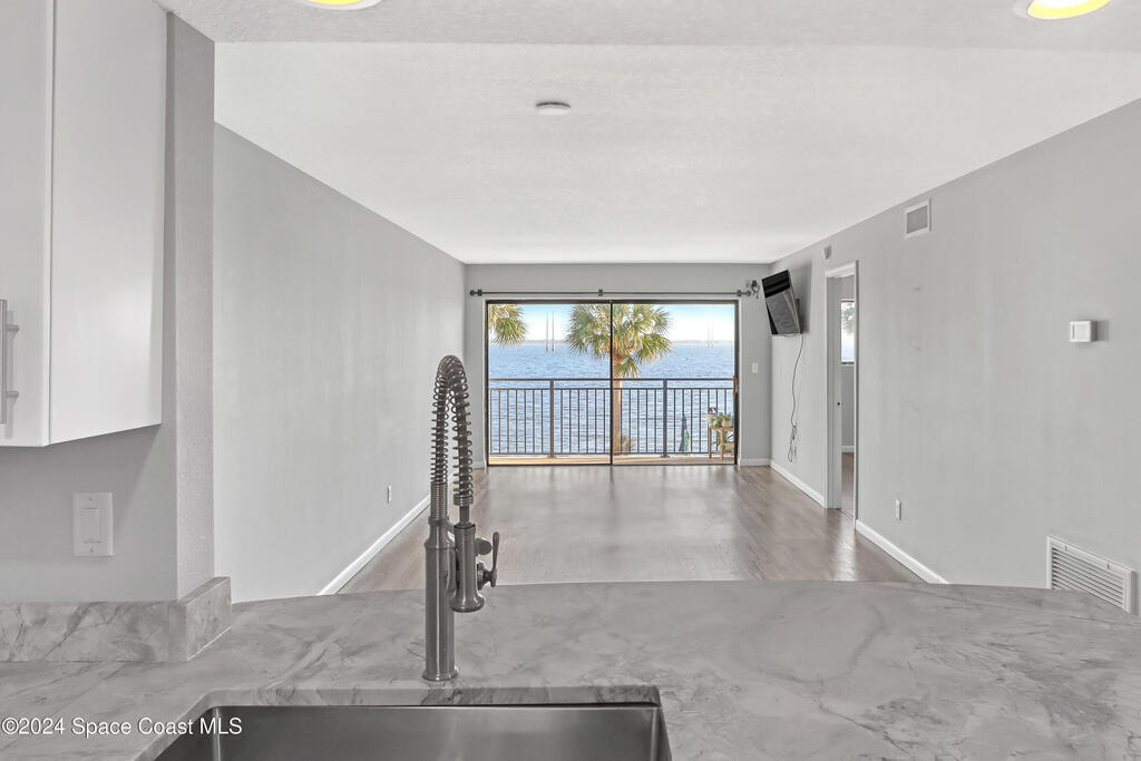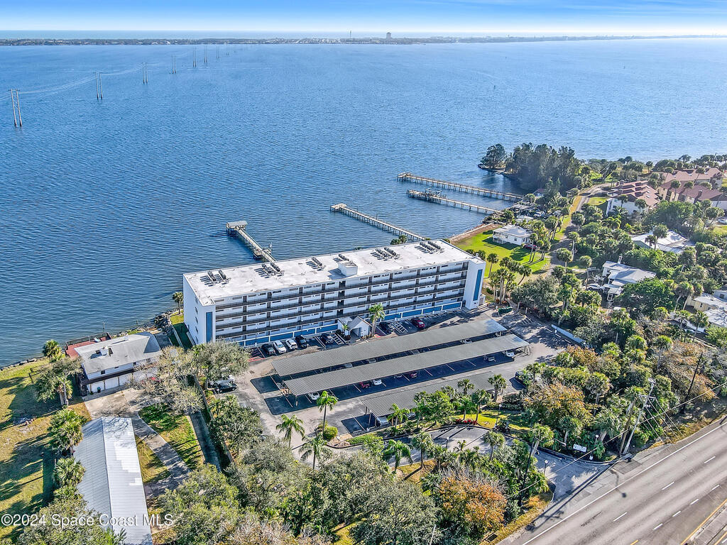 Direct Indian River, move-in ready condominium in a solid building with excellent amenities including a fabulous riverfront pool, extensive pedestrian dock on the river, car wash station, covered parking, and a very reasonable monthly HOA of $680 which includes cable TV, WIFI internet, water & sewer & garbage, pest control, grounds maintenance, and exterior building insurance. This property includes a fully outfitted kitchen including custom granite counters and extra cabinet space, updated designer flooring, and automatic hurricane shutters for complete peace of mind. The waterfront view is quite special that includes a direct view of rocket launches to the north.This property is definitely worth checking out!!!
