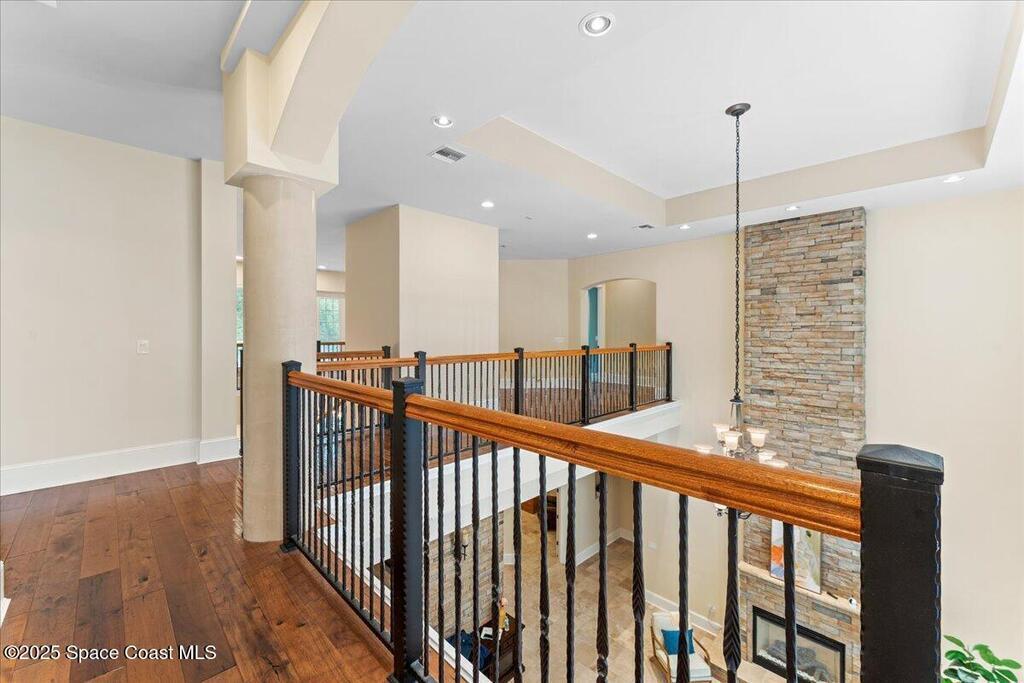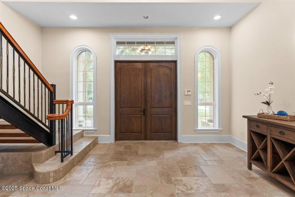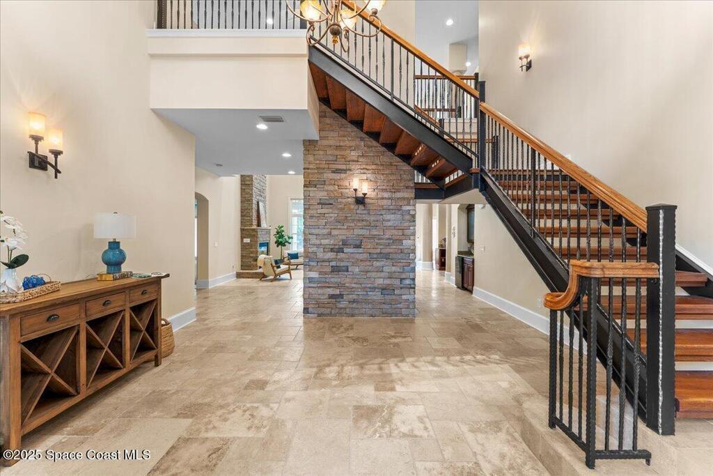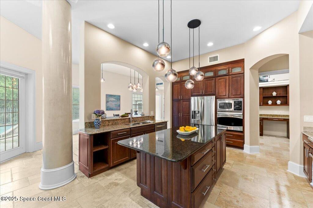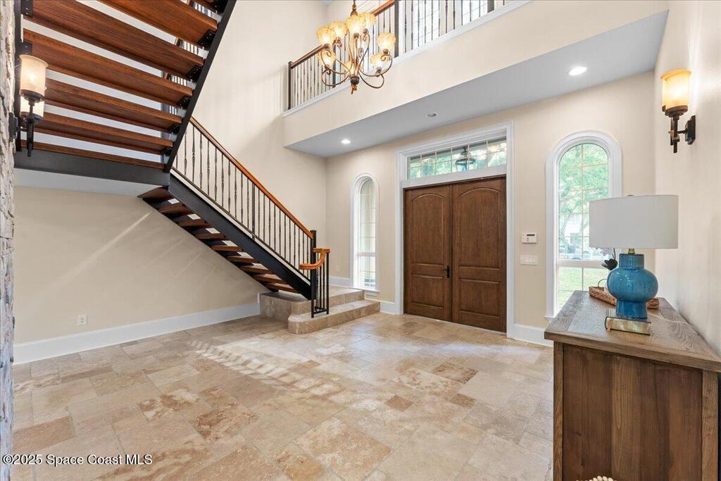 Step into a world of timeless elegance and modern luxury with this extraordinary custom-built ''Green Home'', nestled just off historic Rockledge Drive. Every detail has been crafted to blend sophistication, comfort, and energy-conscious design, creating a sanctuary where each day feels like a retreat.A soaring grand foyer with custom stonework and exquisite tile flooring welcomes you, setting the tone for the home's refined beauty. The chef's kitchen is a masterpiece, featuring a sprawling center island, dual sinks, gas range, and stainless steel appliances, flowing seamlessly into a great room with a dramatic stone-accented fireplace and a wet bar made for entertaining friends and family.Two master suites offer unparalleled privacy and comfort--the upstairs suite opens to a balcony overlooking a sparkling pool and lush backyard, inviting quiet mornings with sunlight dancing on the water. The main-level master provides effortless access and convenience, while two additional
