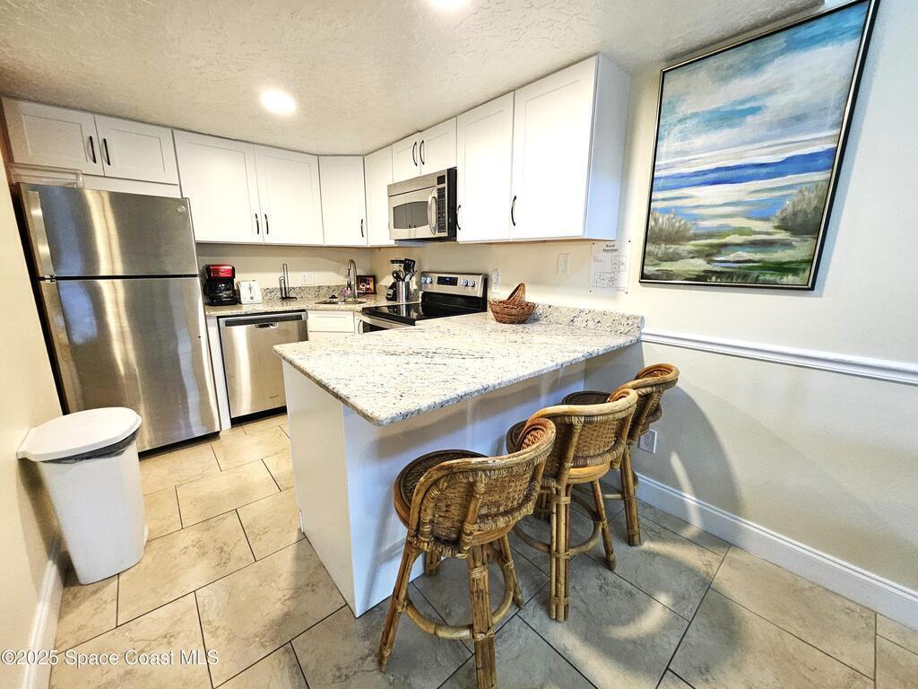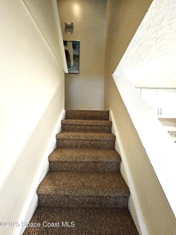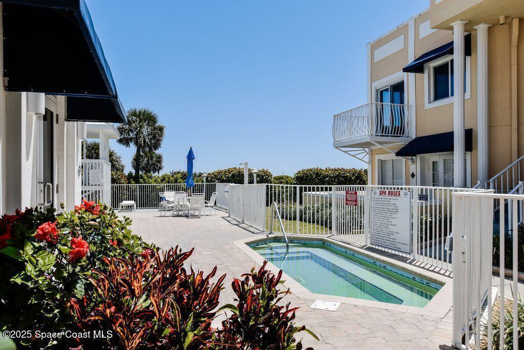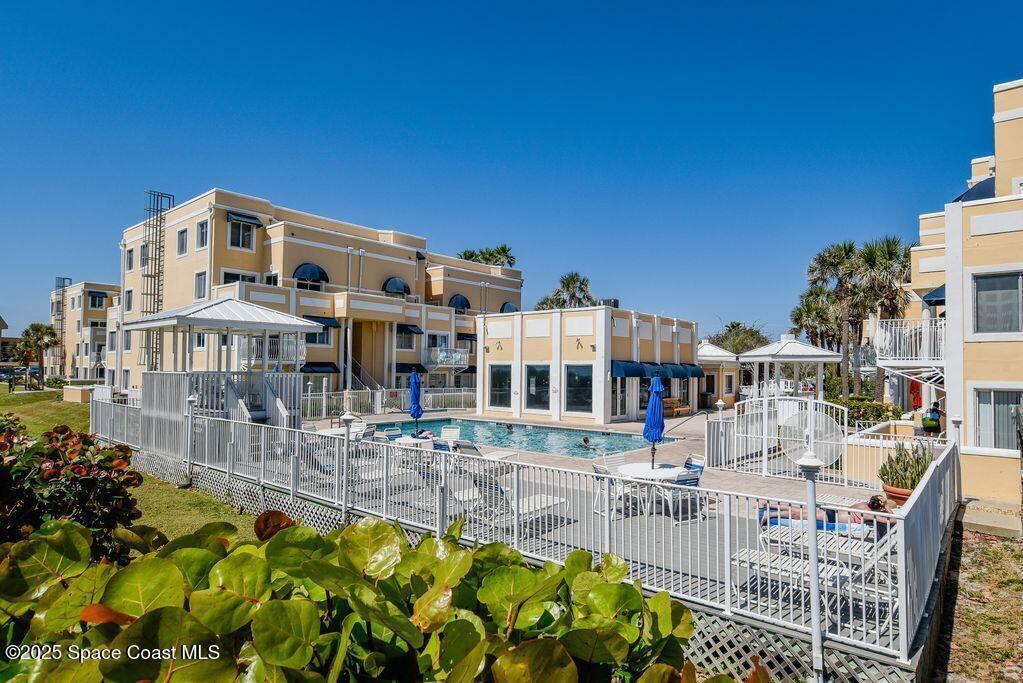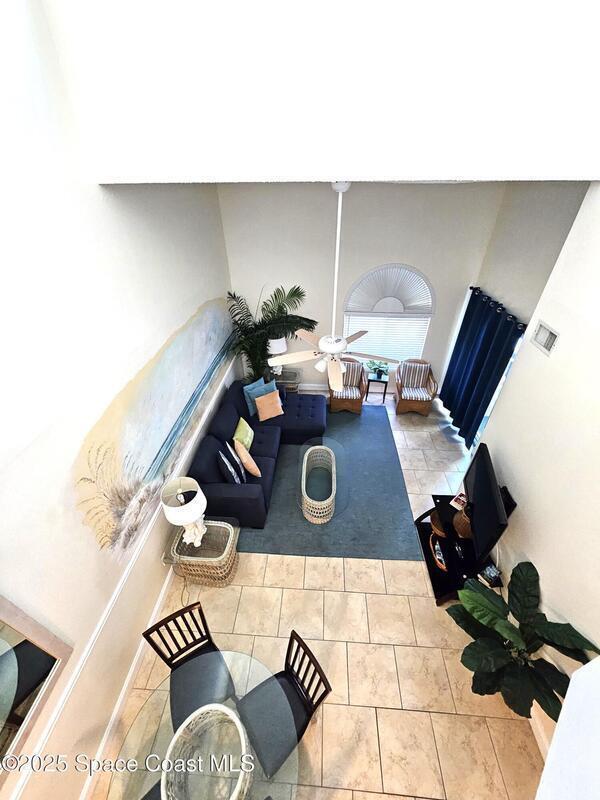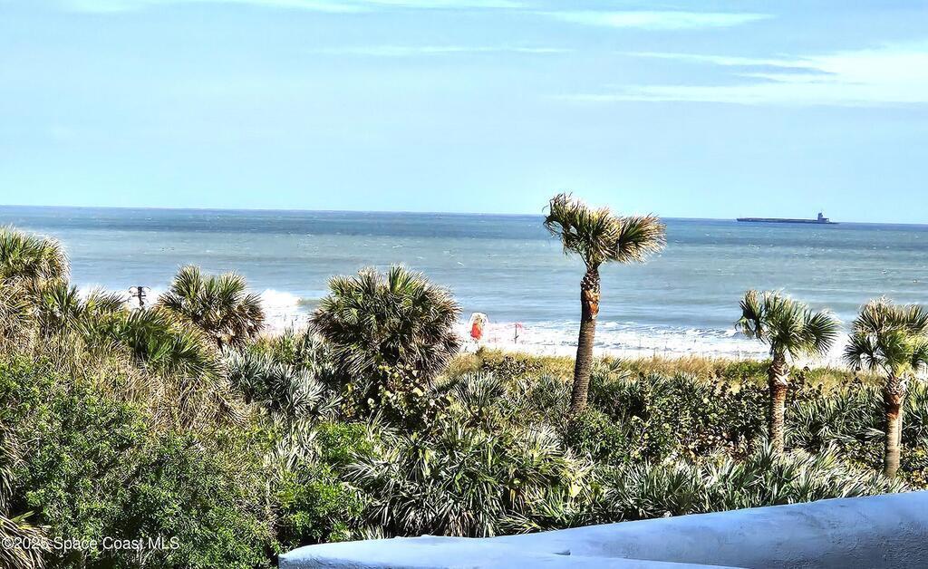 Income producing Multi-Level Penthouse in oceanfront complex. This is a fully furnished vacation rental in a resort style community. Unique Tri-level Penthouse model. 2 bedrooms, 2 baths plus extra shower in second bath. Dining area/Living room with volume ceilings. Hurricane windows & sliders. Living room & Master with sliders to balcony. Amenities: Oceanfront pool, hot tub/spa, beach access, grilling areas and clubhouse. Weekly rentals allowed. Conveniently located close Port Canaveral, shopping, restaurants. and expressway. Whether you're looking for a second home, a primary residence or an income-generating property, this condo is a must-see.