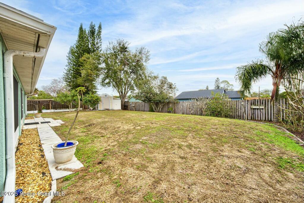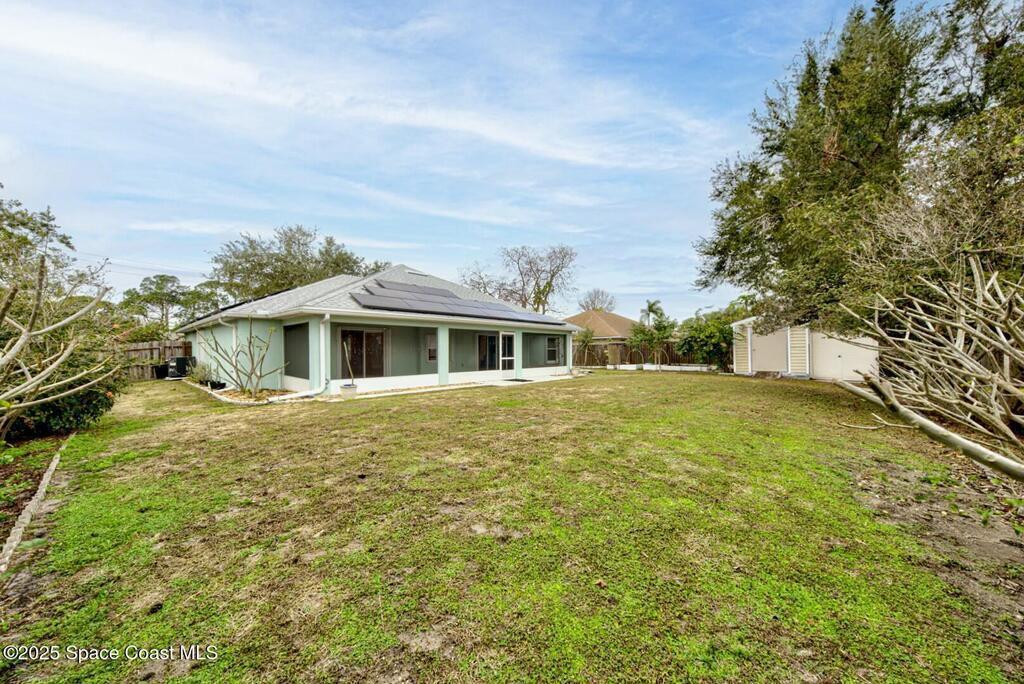 No HOA. New roof 2024! This home has solar panels to help make electric bills low. New septic pump in 2022, new appliances 2018, new washer and dryer, BRAND new hot water heater January 2025, and a water filtration system. Formal dining and a very large back screened in patio in this 3 bedroom 2 bath home. Accordion shutters and a couple of large sheds in the backyard next to the raised beds for your next gardening project complete with fruit trees. Tiles on the walls in the kitchen for a modern feel and plantations shutters on some of the windows. Large walk in closet in the master bedroom. A great place to step outside to watch the rocket launches or a short trip to Orlando airport or the Disney attractions and the beaches. Ready for the Florida Lifestyle? Stop by and see this home today!