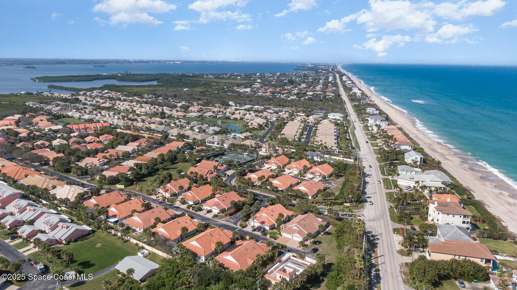 Located in the desirable South Shores community on the Space Coast, this beautifully updated home offers the best of ocean and river living. Enjoy sunrises over the Atlantic and sunsets on the Indian River Lagoon, just steps from your door. Swim, fish, boat, or spot dolphins, manatees, otters, and nesting sea turtles. Inside, the open-concept layout features new vinyl flooring, a spacious living and dining area, and 3 bedrooms with 2 full baths. Recent upgrades include a 2024 A/C, impact-resistant garage door, new dishwasher, and washer/dryer. Relax on the private patio or entertain on the rear deck with a grilling area and lush landscaping. South Shores amenities include a deeded beach, gated entry, pool with cabana, pier, and clay tennis courts.
