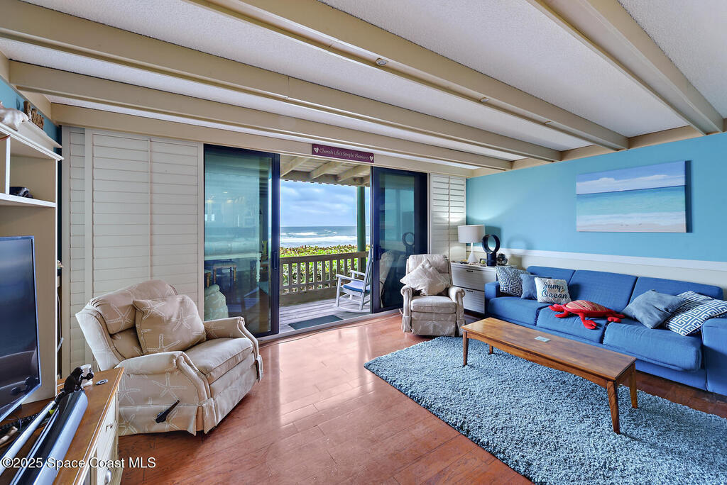 Oceanfront Beach House Condo, Very Spacious Corner Unit with Over 935 Sq Ft of Living Area Plus Deck Overlooking Ocean & Beach. GREAT FOR YEAR ROUND LIVING OR THE PERFECT WINTER GETAWAY! Light & Bright With Lots of Windows. Walk Right Out Your Door To The Beach, 1.5 Baths, Steam Option in Shower ( Sauna ) Custom Cabinetry, Wood Floors & Extra Storage Closets. Only Steps To The Beach, Pool & Bar-B-Que. Quiet & Private. Recent engineering inspection of community shows no structural issues and no assessments. Rules & Regs; https://www.beachwoodvillas.com/rules.htmDiscover Paradise On The Treasure Coast With Top-Notch Water Sports, World Class Golf & And The Best In Boating And Fishing!