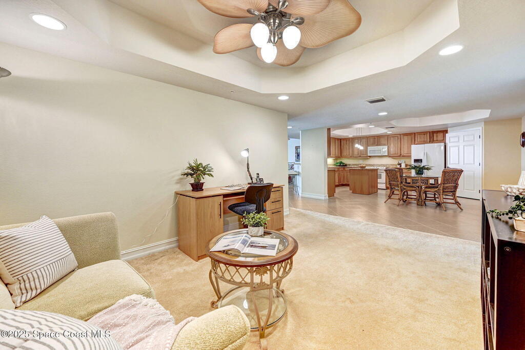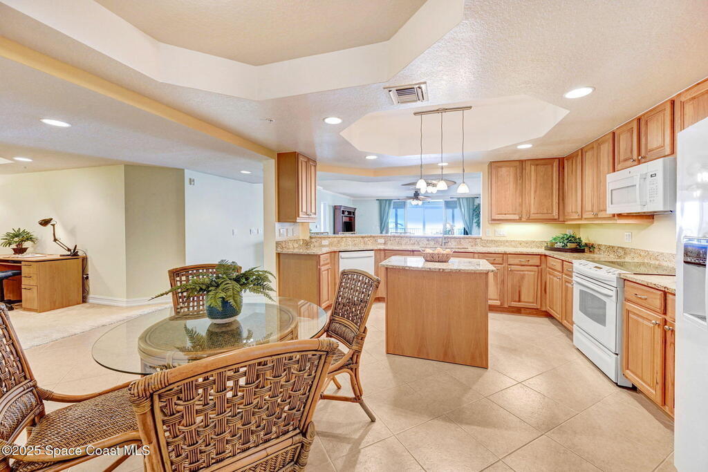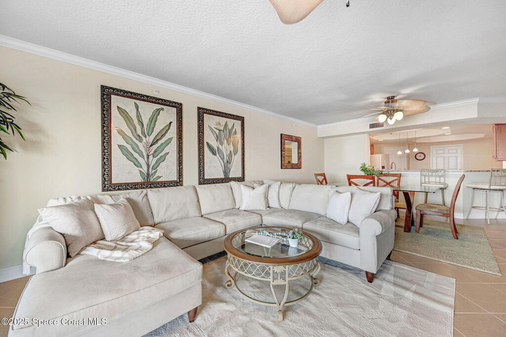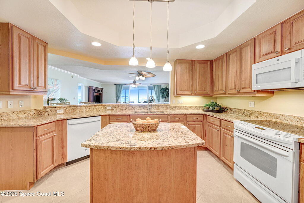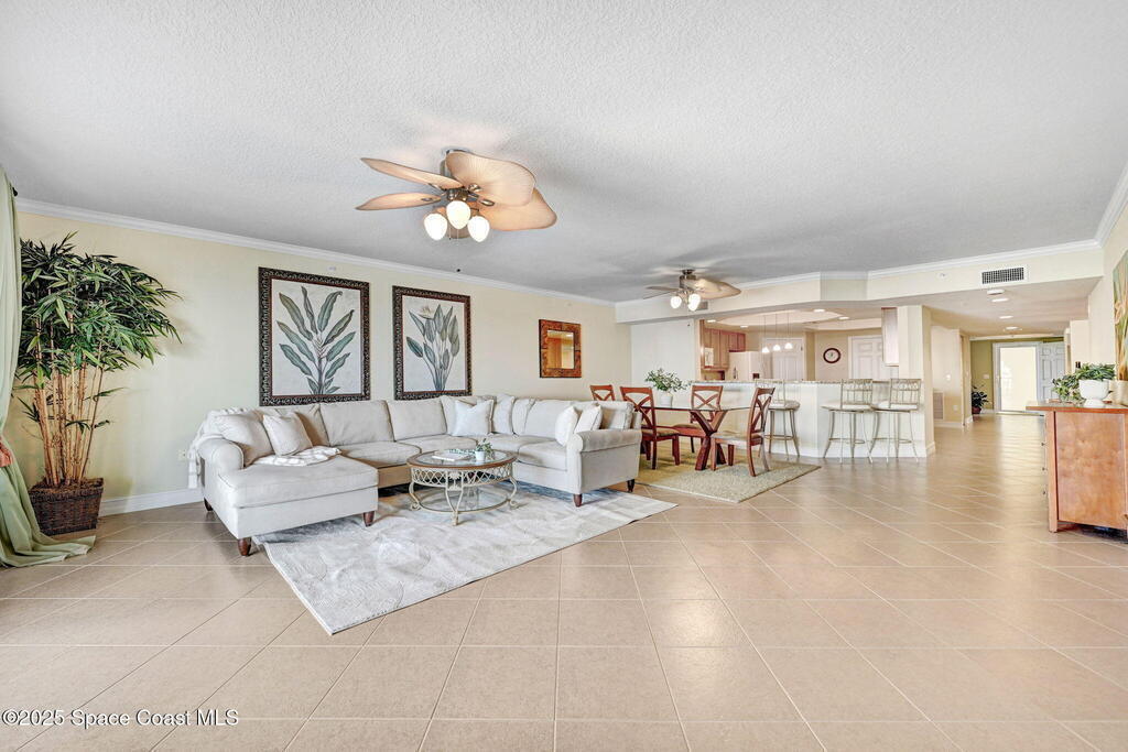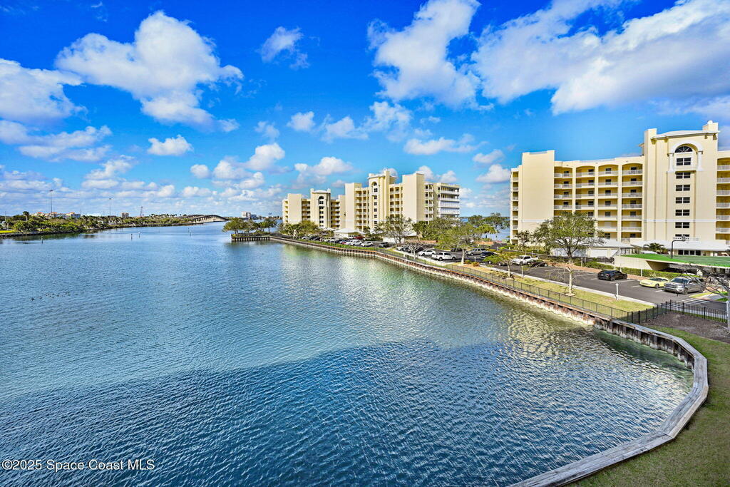 This Flamazing Island Pointe 3rd floor condo offers Indian River views from the kitchen, living area, and primary suite! This 2528 sf, 3-bedroom, 2-bath home has a bright, open-split floor plan filled with natural light. The chef's kitchen features granite countertops, stainless steel appliances, a walk-in pantry & a large movable island, ideal for entertaining. A versatile bonus room can serve as a den, office, or formal dining area. The spacious primary suite includes his/her closets & a luxurious en-suite bathroom with a garden tub, separate shower & dual vanities. Guests are required to check in with the gate guard, and the private garage is conveniently located at the front of the building. Enjoy resort-style amenities which include a clubhouse, exercise room, heated pool, spa, sauna, & tennis/basketball courts. minutes from I-95, Cocoa Village, beaches, shopping. The ultimate in luxury living!