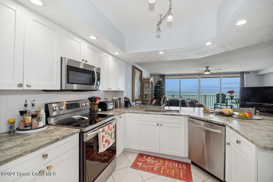 Wake up to panoramic ocean views and enjoy rocket launches from your private balcony in this fully redesigned 3rd-floor direct oceanfront condo at Lantana. This 3-bed, 2.5-bath residence with a flex room offers over 2,000 sq ft of elevated coastal living. The chef's kitchen boasts leathered granite countertops, custom cabinetry, and premium stainless appliances--all with endless ocean views. Thoughtful upgrades throughout include elegant flooring, bespoke cabinetry, and exquisite granite finishes. Enjoy private beach access, a heated pool, fresh exterior paint, restored balconies, and a 1-car detached garage with extra storage--all with NO assessments. This is oceanfront living at its finest!