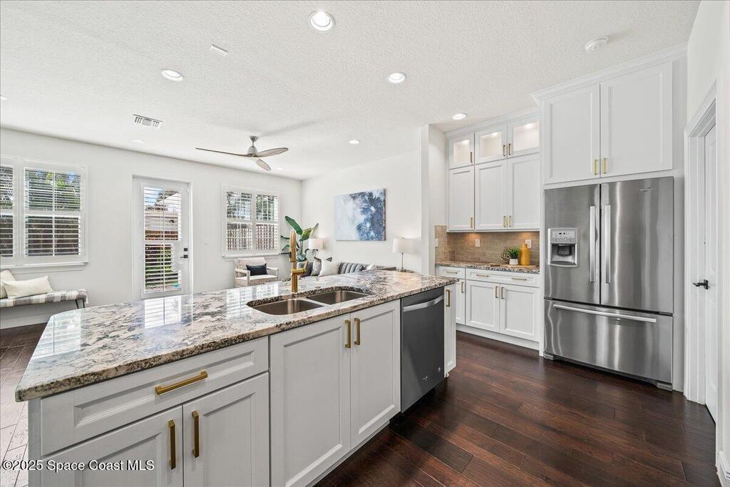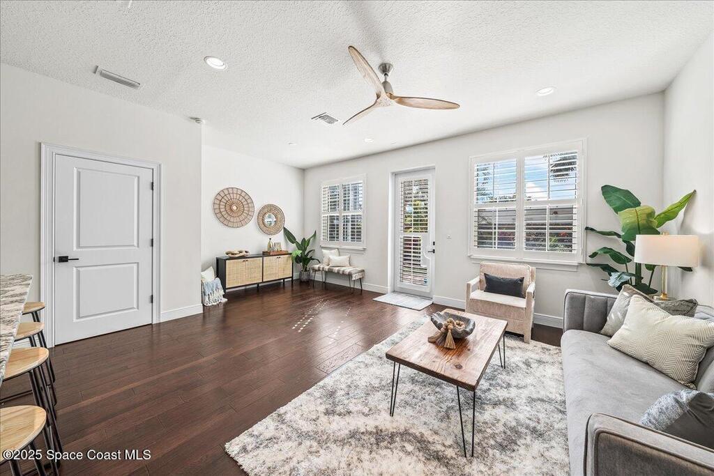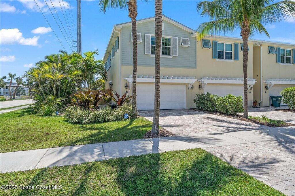 DO NOT MISS THIS AMAZING OPPORTUNITY IN INDIALANTIC - KEY WEST STYLE TOWN HOME LOCATED IN IDYLLIC LOCATION SOUTH OF FIFTH AVE STEPS FROM THE BEACH!!!!!!! Meticulously maintained and updated town home boasting coastal charm in a spacious open floor plan with tons of natural light. Gorgeous wood flooring in main living area, plantation shutters throughout entire home, new carpet, show stopping custom kitchen with counter seating, white cabinets, stunning quartz countertops, stainless steel appliances, and updated fixtures. Ocean views from upper level, huge, spa like master bath, gigantic master closet, lush landscaping, gorgeous paver patio in fenced backyard for entertaining and enjoying the relaxing ocean sounds and breezes. New, upgraded 2024 HVAC and brand new fencing. Walk, bike, or take your golf cart to the beach, restaurants and shops on 5th Ave. Beachside Florida living at its absolute best! Seller is agent.