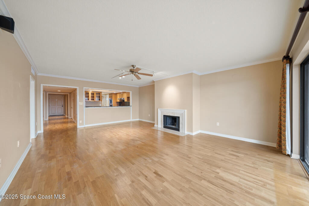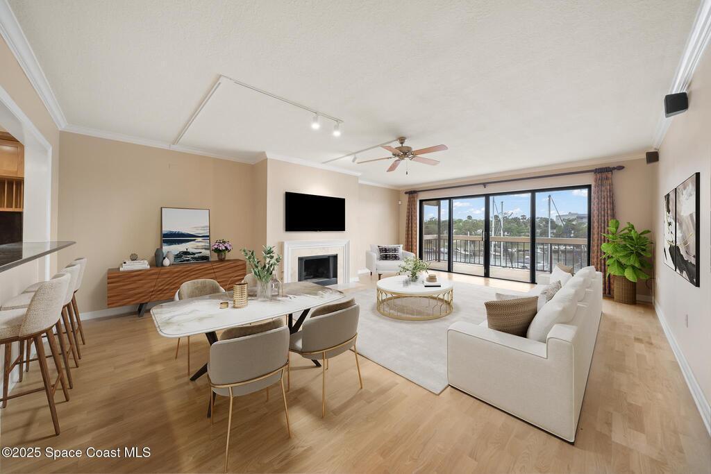 Relax & unwind in this updated 3rd Floor Condo fronting the Melbourne Harbor Marina. The location of this building 'Harbor Walk One' cannot be beat and neither can these incredible sunset views. The kitchen features granite countertops, stainless steel appliances, a flat cooktop, built-in oven and microwave. Natural light filters through the living room wall of quad sliders highlighting natural wood flooring and a wood burning fireplace. The private balcony overlooks Crane Creek where you can watch the boats go out to the river or dolphins playing each morning. The Primary Suite boasts stunning views, a door to the balcony, and walk-in closet with custom shelving. The Primary Bath has double sinks, a built-in dresser, and tiled shower. There's an extra bedroom with a walk-in closet and views of the Indian River, plus a second Bedroom/ Office with built-in desk. Community pool to cool off in the summer and just a short walk to multiple quality dining options!*Some photos are staged