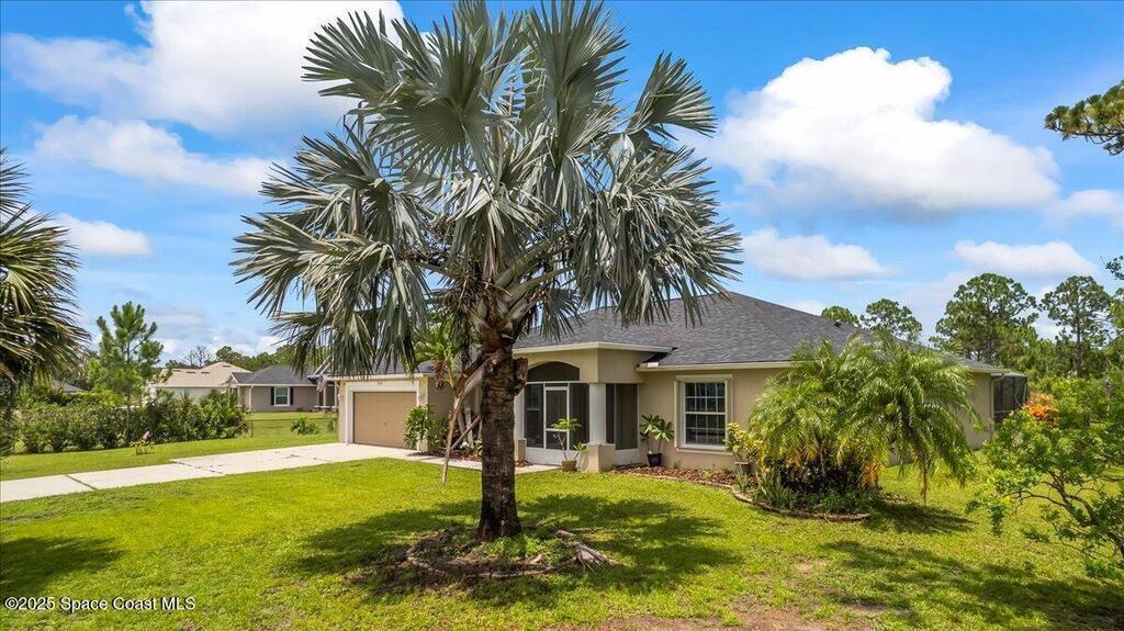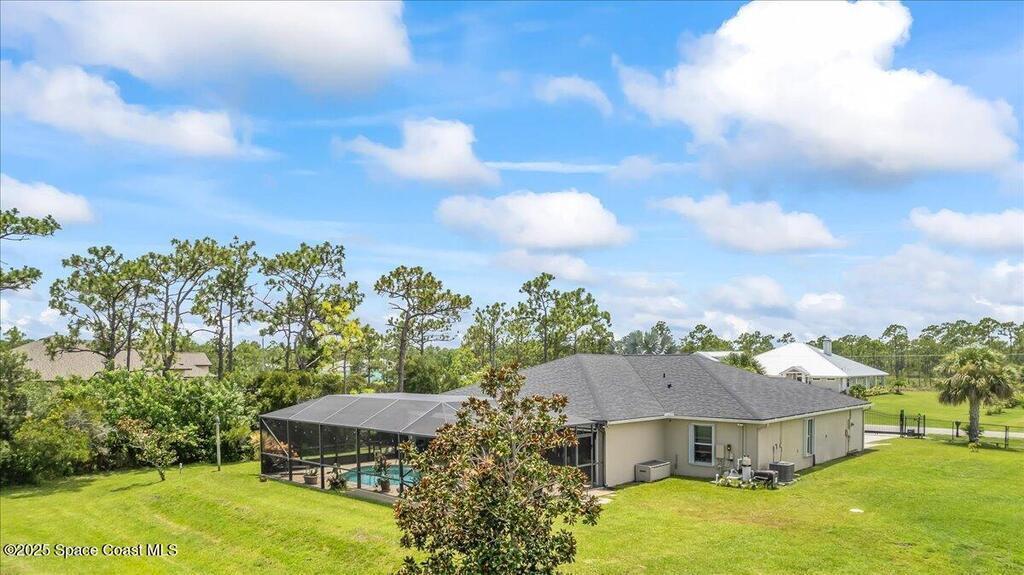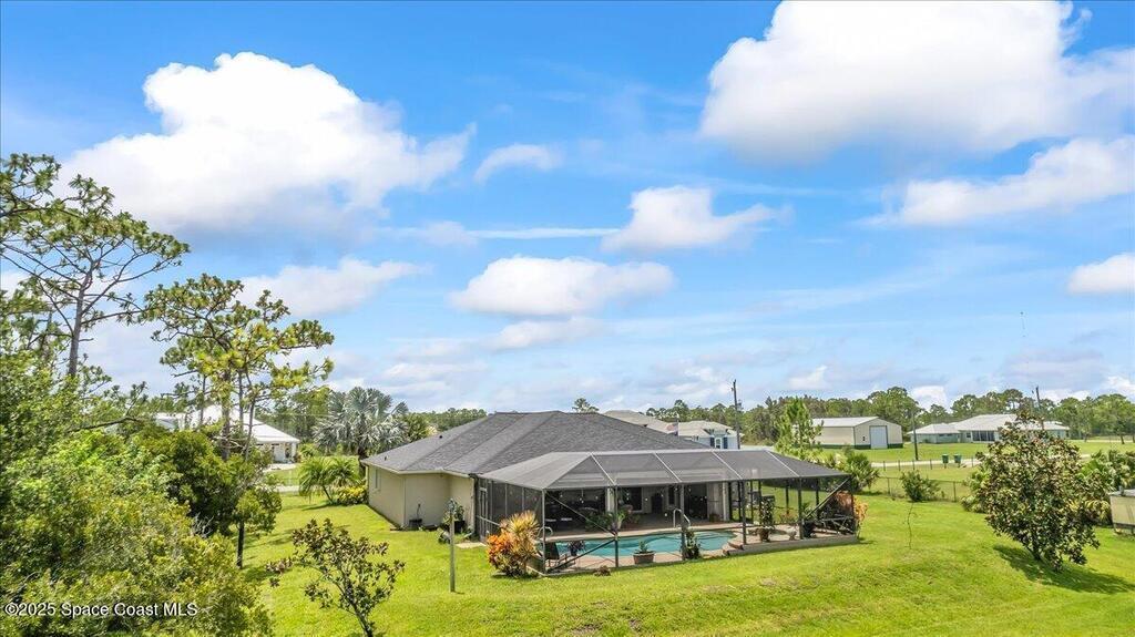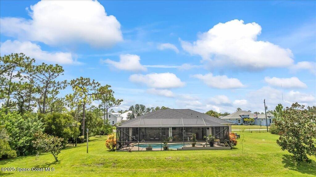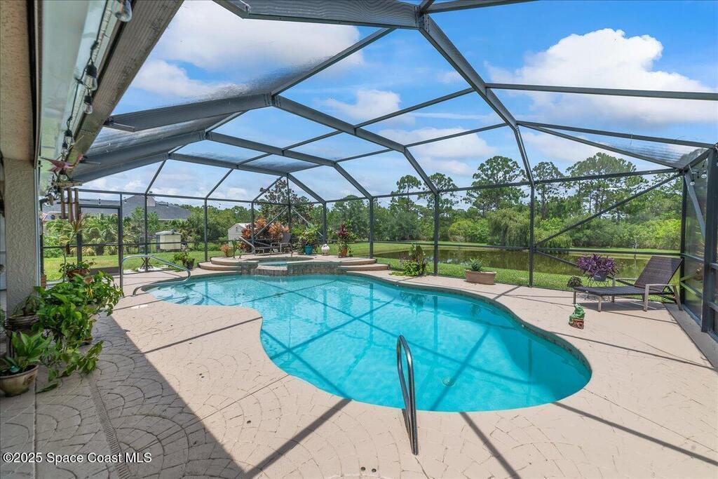 BACK ON MARKET, BUYER FINANCING FELL THROUGH. Fully inspected and surveyed with a clean report. New roof July 2025! Tucked behind a gated entry on over an acre of fully fenced land, this peaceful 4 bed 2 bath retreat offers space to breathe and room to roam. From the moment you walk in, you'll feel the warmth of an open layout with soaring ceilings, wood look tile, and a natural flow that brings people together. The kitchen is the heart of it all, stylish yet functional, it connects seamlessly to the living and dining spaces. Step outside to your private sanctuary, a covered patio overlooking the pool, spa, lush landscaping, and a tranquil pond, your daily escape. The primary suite is a true retreat with lanai access, a spacious walk in closet, and dual vanities. A charming chicken coop adds personality and a touch of country charm (chickens included!). A rare find and a steal at this price, offering privacy and comfort in a setting that feels miles away yet close to everything.
