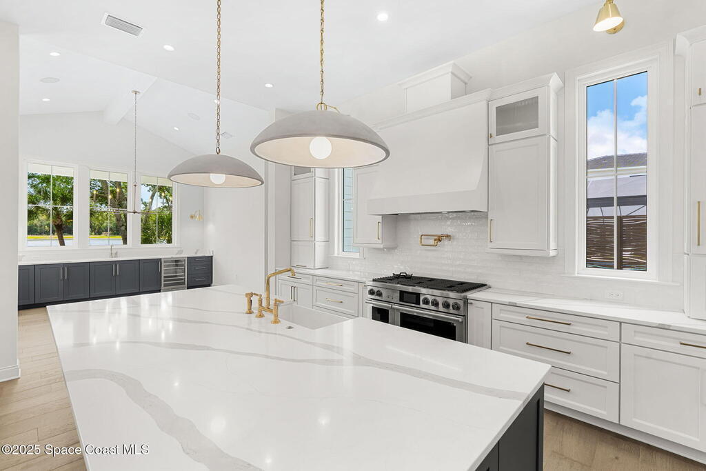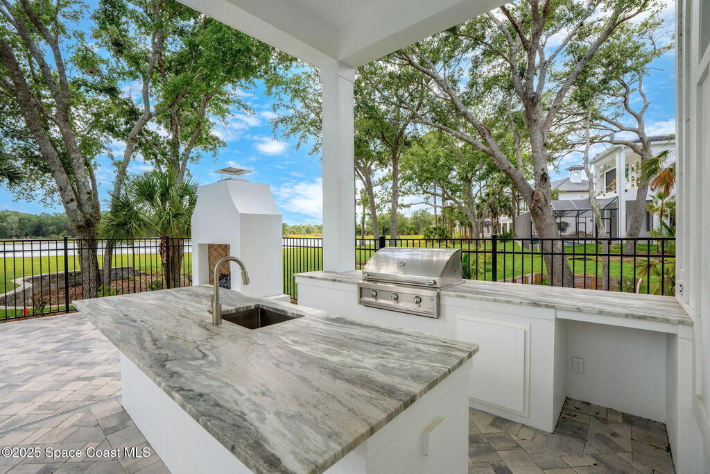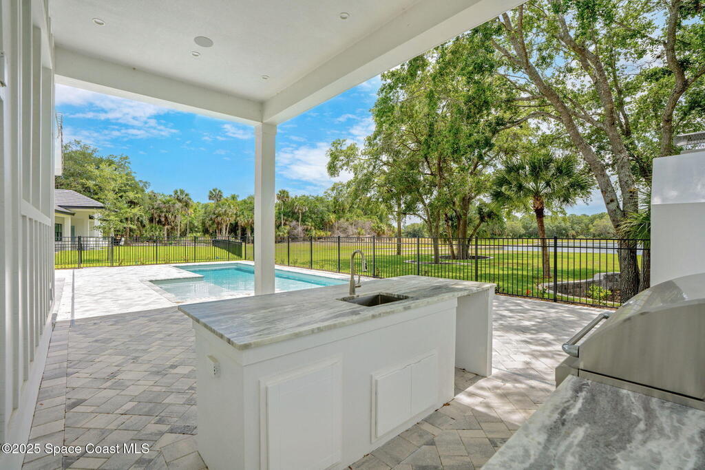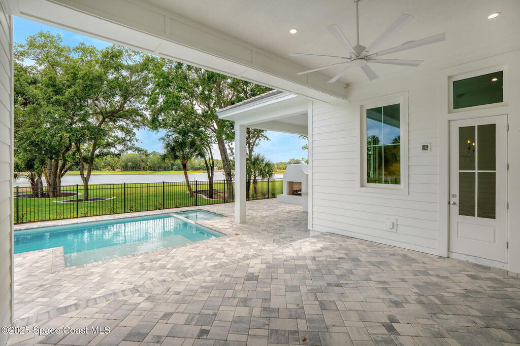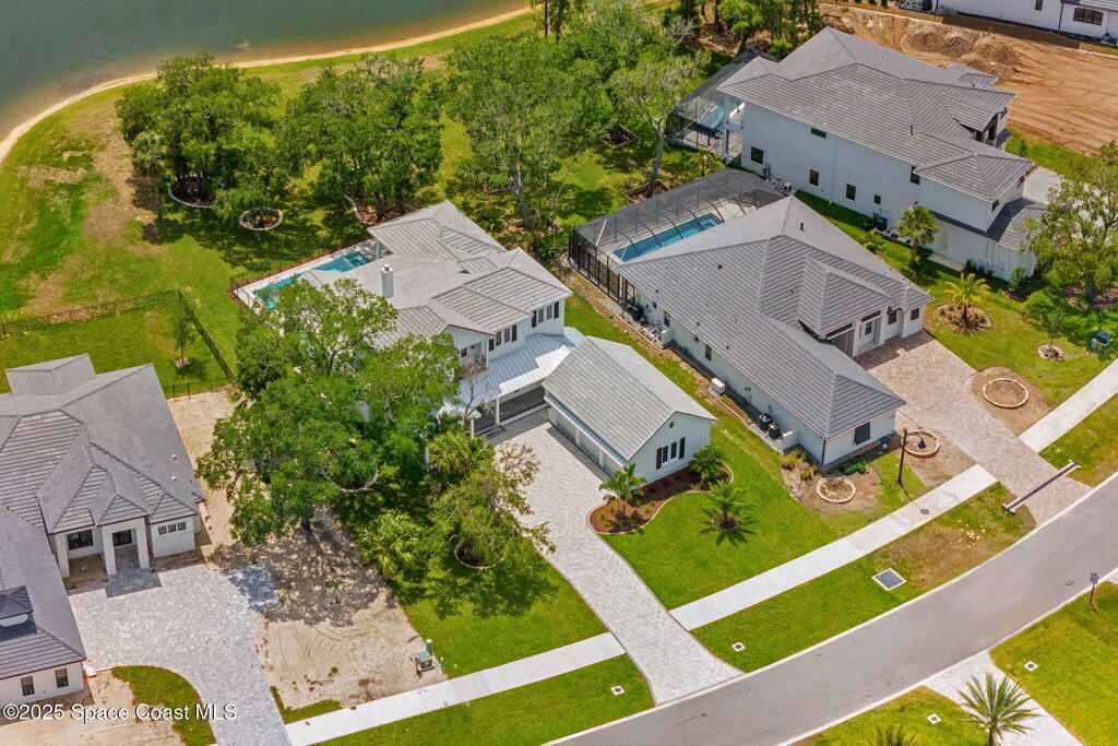 Magnificent New Construction! This Coastal Carolina style home, unlike any other in Viera, boasts 5 bedrooms, 4.5 baths, plus an office, with 4,069 square feet under air. State of the art finishes throughout, this home exemplifies Coastal Luxury. Sizable front porch beckons southern hospitality and is the perfect space to welcome your guests with a cold lemonade and a light rock in a swing. Chefs kitchen, main living area and dining room all overlook a stunning backyard oasis that includes pool and spa, immense summer kitchen, outdoor gas burning fireplace and lush landscaping that embraces the largest lake in Aripeka, perfect for entertaining! The ground floor boasts the master suite, office, a guest suite with full bath, plus a half bath with access to pool area. Second floor enjoys the family room with a balcony to welcome in a sea breeze, 3 bedrooms and 2 baths. The detached 3 car garage and the home front elevation is adorned with natural gas Coach lighting for added charm.