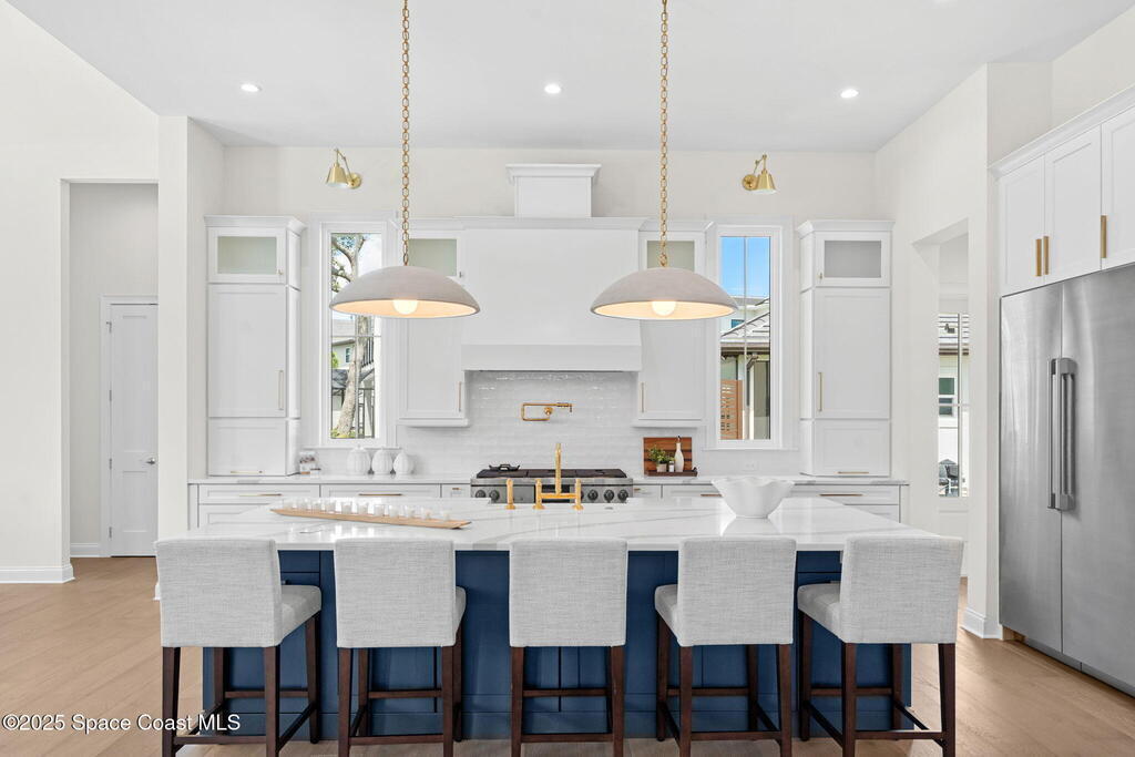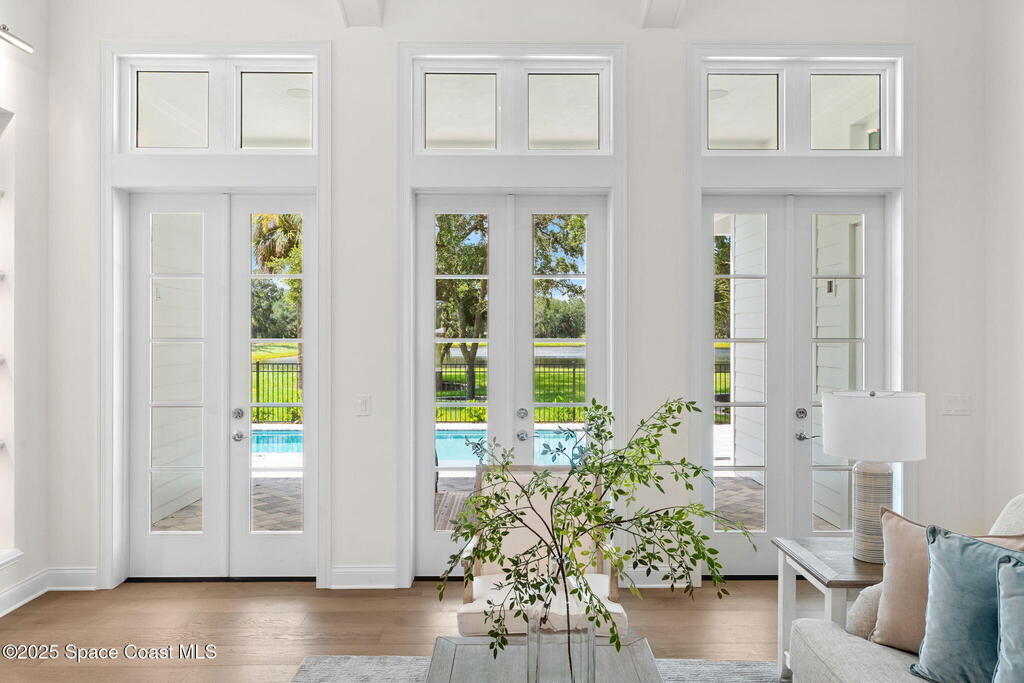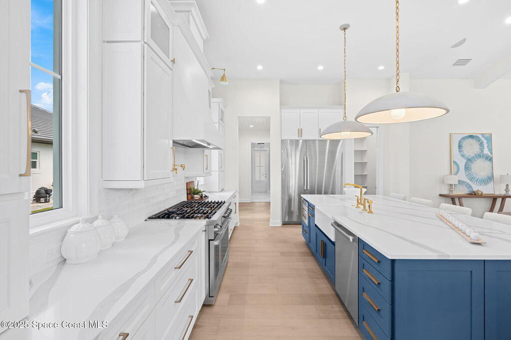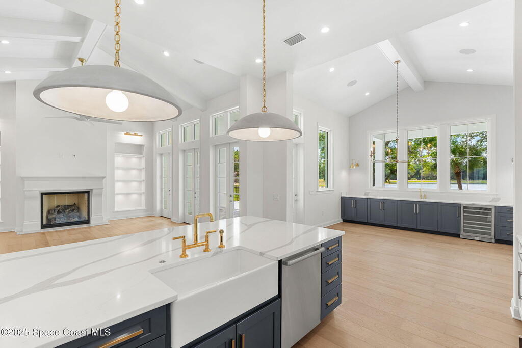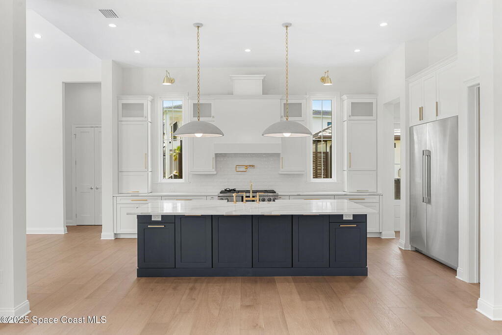 Magnificent New Construction! This Coastal Carolina style home, unlike any other in Viera, boasts 5 bedrooms, 4.5 baths, plus an office, with 4,069 square feet under air. State of the art finishes throughout, this home exemplifies Coastal Luxury. Sizable front porch beckons southern hospitality and is the perfect space to welcome your guests with a cold lemonade and a light rock in a swing. Chefs kitchen, main living area and dining room all overlook a stunning backyard oasis that includes pool and spa, immense summer kitchen, outdoor gas burning fireplace and lush landscaping that embraces the largest lake in Aripeka, perfect for entertaining! The ground floor boasts the master suite, office, a guest suite with full bath, plus a half bath with access to pool area. Second floor enjoys the family room with a balcony to welcome in a sea breeze, 3 bedrooms and 2 baths. The detached 3 car garage and the home front elevation is adorned with natural gas Coach lighting for added charm.