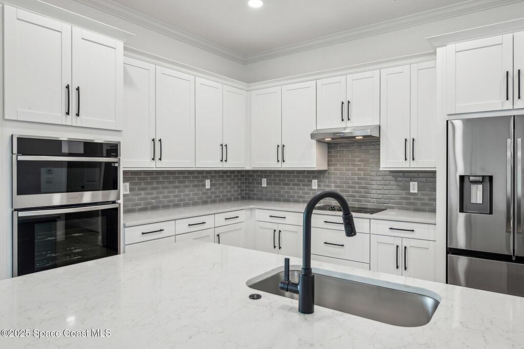 Live on the river and preserve. Brand New & Move-In Ready! This stunning 4-bedroom, 3-bath, 3-car garage home spans nearly 2,900 sq. ft. in a gated, riverfront community with a shared dock, optional boat slip, community pool, green space, and low HOA dues. Upstairs, a private 4th bdrm with an en-suite bath doubles as a second master or bonus room, complete with a balcony overlooking the river. Luxury finishes include 10' ceilings, impact windows, plank tile flooring, premium appliances, soft-close cabinetry, and a free-standing tub in the primary bath. A pavered driveway and fresh landscaping enhance curb appeal, while the backyard offers conservation and river views--with room for a pool or extended patio. Minutes from Eau Gallie Arts District, beaches, Melbourne Airport, and I-95--your dream home awaits!