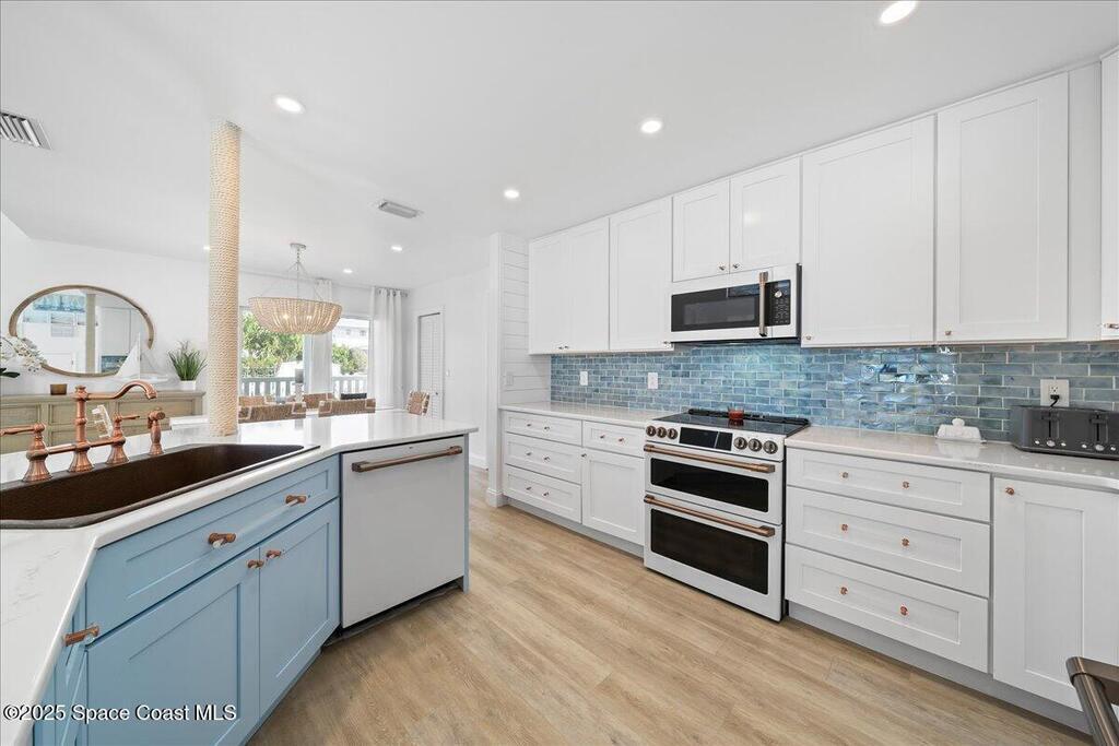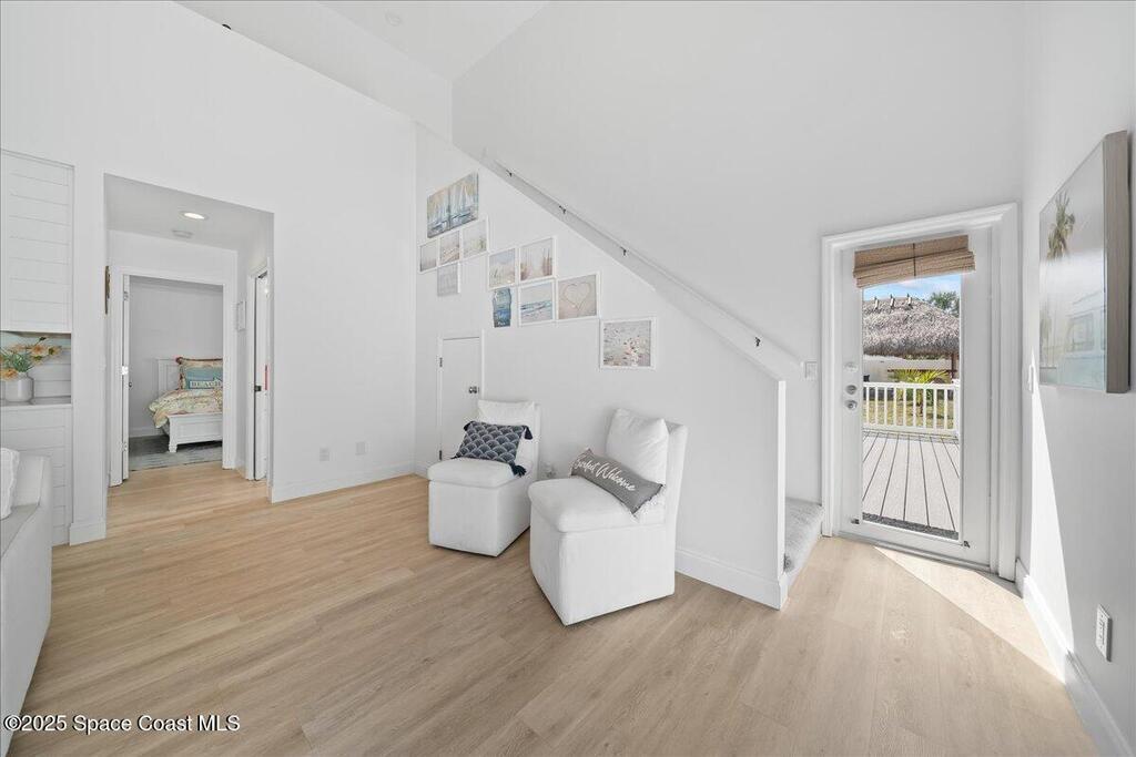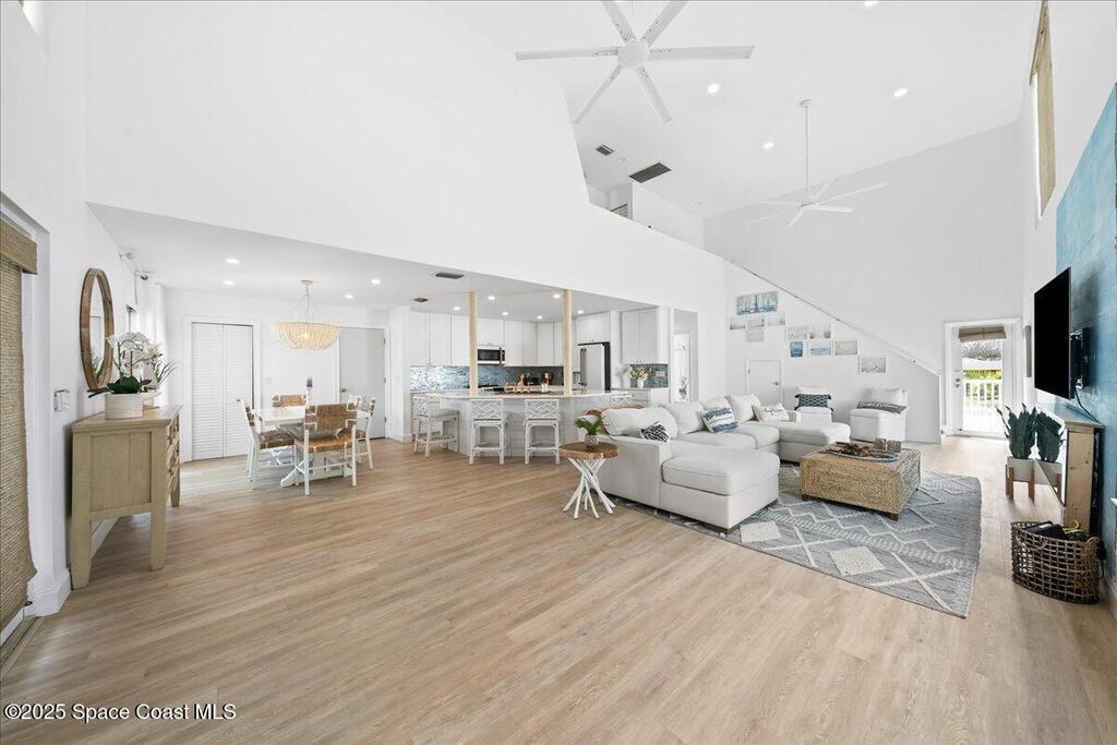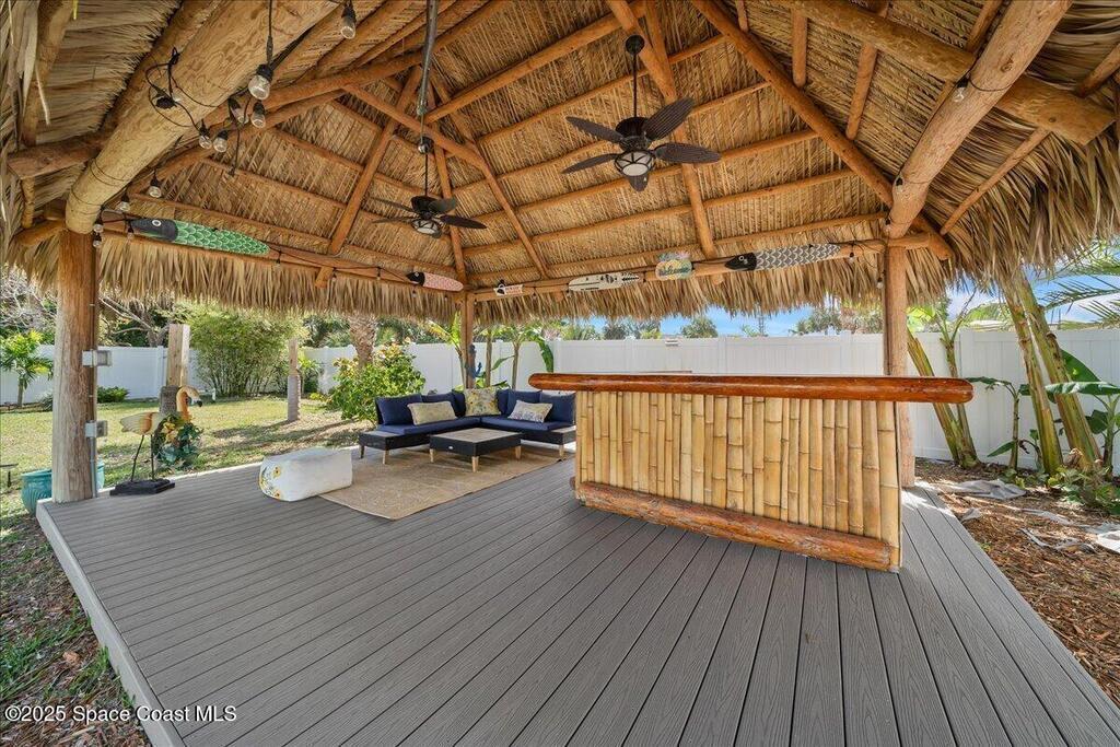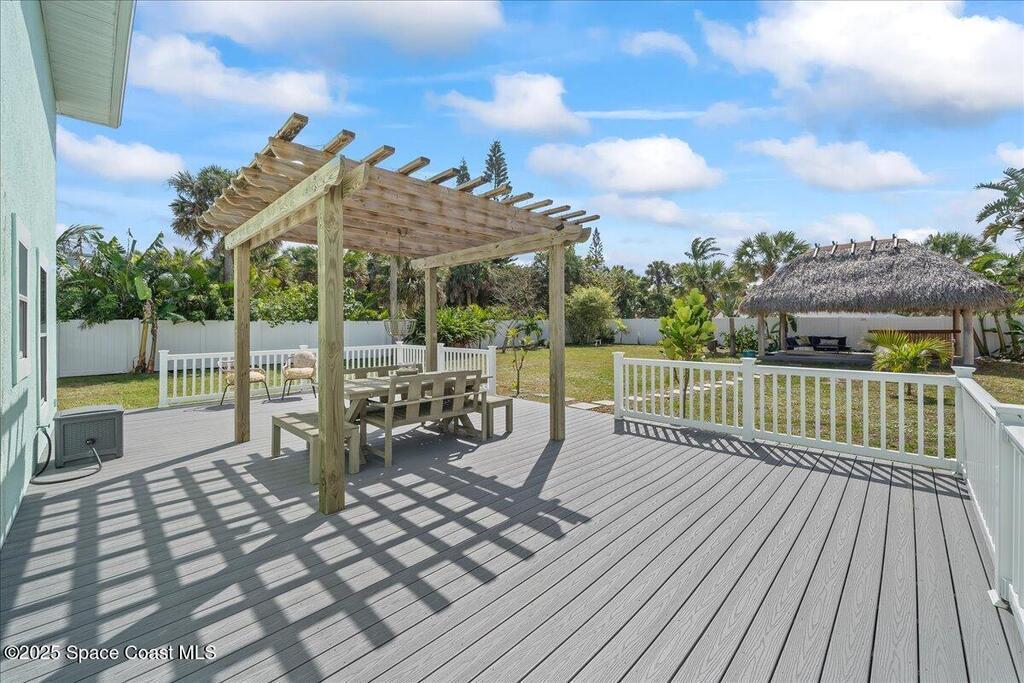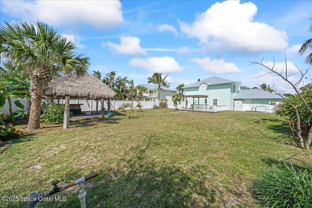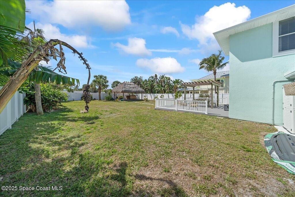 Live the ultimate coastal lifestyle in this beautifully updated Melbourne Beach oasis, just across the street from the ocean! Start your mornings with breathtaking sunrises from the upstairs deck and unwind in the evenings with stunning sunsets from your private tiki bar equipped with power--the perfect space for entertaining or relaxing. Inside, the coastal kitchen boasts sleek quartz countertops, updated appliances, and ample storage, making meal prep a breeze. The open-concept living area is bright and airy, designed for both comfort and functionality. Outside, the spacious backyard offers endless possibilities, with plenty of room for a future pool or spa. Whether you're looking for a full-time residence or a vacation retreat, this home has everything you need for beachside living.