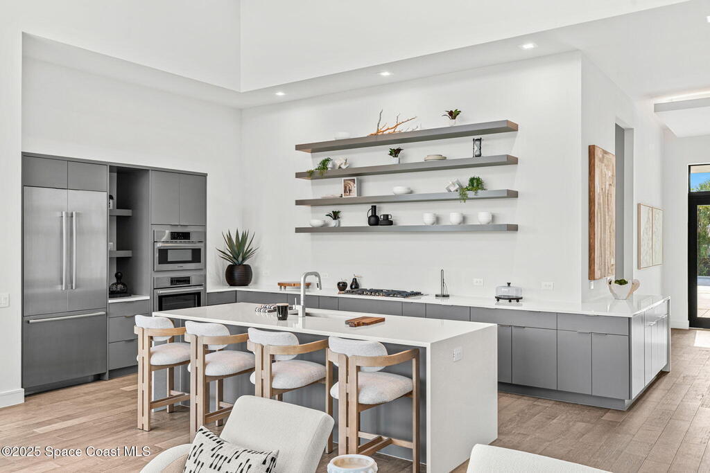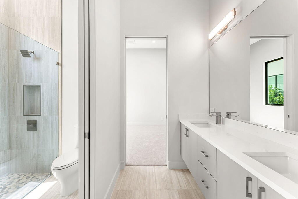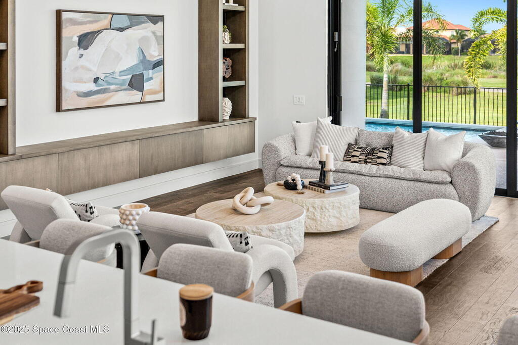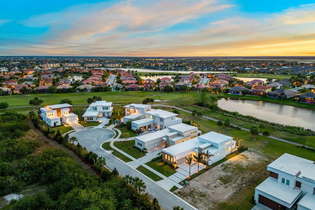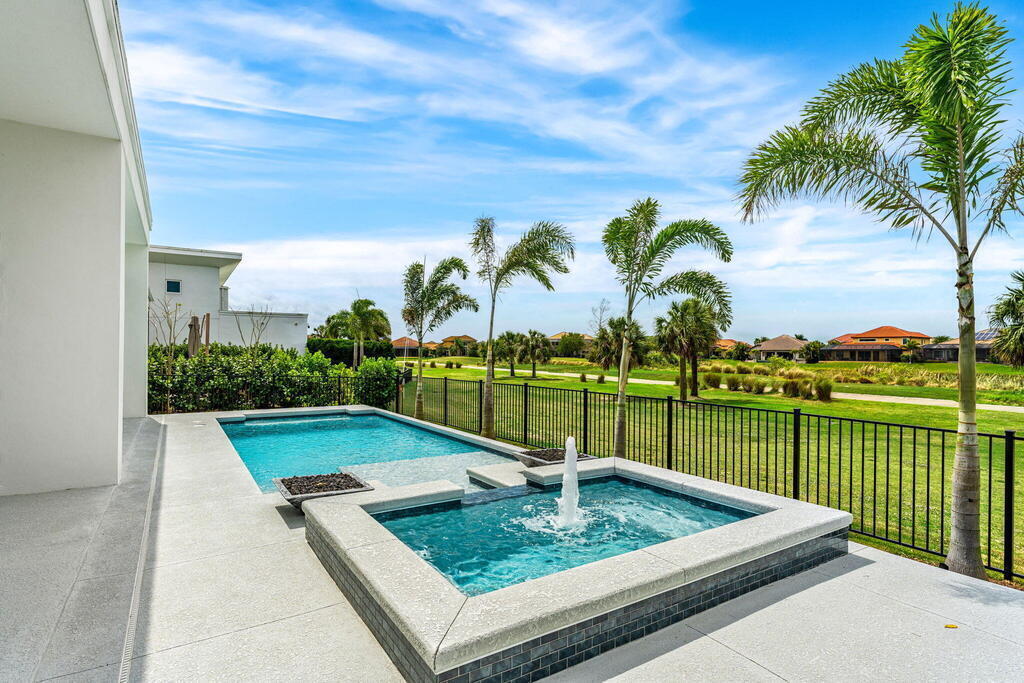 72 HR. KICK OUT CLAUSE! This mid-century modern masterpiece is a contemporary showstopper! BRAND-NEW CONSTRUCTION boasts expansive impact-rated windows & sliders framing views of the esteemed Duran Golf Course, a glittery lake & a fountain pool/spa. Towering ceilings soar over stunning wood-look floors that unite open-concept living & dining. White quartz countertops sweep across a high-end island kitchen featuring gray cabinetry, sleek Bosch SS appliances, a wall oven/micro, gas cooktop & large walk-in pantry. The sunlit great rm w/floating entertainment center highlights a quad slider to the patio. Luxe owner's retreat w/personal pool access, a HUGE custom walk-in closet, a striking glass-enclosed tub & dual-head shower. Jack & Jill bath links 2 spacious guest rms, while the 4th bdrm enjoys a private tub/shower ensuite. Mudroom & convenient cabana bath! A premier grill station & covered lanai overlook the shimmering pool & golf course greens.