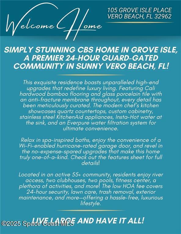 SELLER OFFERING $10K IN BUYER CONCESSIONS! Exquisite CBS home w/high-end upgrades redefine luxury living! Every detail has been meticulously curated in 2/2 home w/Cali bamboo & glass porcelain tile w/anti-fracture membrane t/o, modern kitchen w/quartz countertops, custom cabinetry, SS KitchenAid appliances, Insta-Hot water + Everpure water system - ultimate convenience. Relax in spa-inspired baths & revel in no-expense-spared upgrades that make this home truly one-of-a-kind. Active 55+community w/2 clubhouses, pool, spa, tennis, pickleball, river access, 24-hour security! Owner will finance!