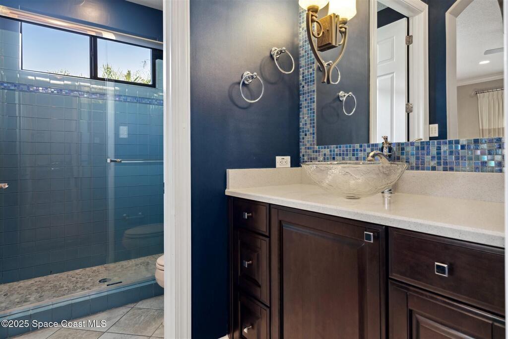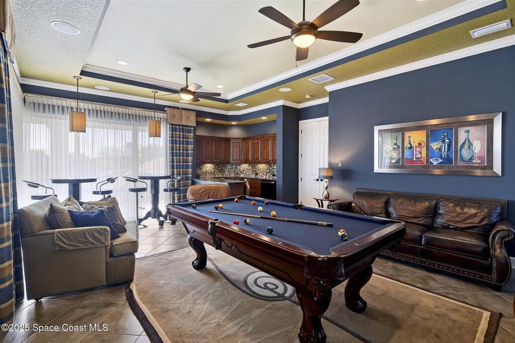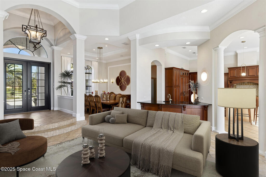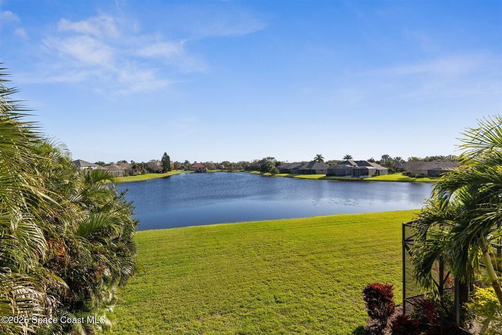 Welcome to an unparalleled blend of elegance, innovation, and breathtaking waterfront views in the prestigious gated subdivision of Summer Lakes in Viera. This exceptional custom-built estate is a true masterpiece, offering 5 bedrooms, 6 full baths, 2 half baths, and a 5-car garage, all nestled on a pristine lakefront lot with an idyllic setting that defines luxury living.Step through the 8-foot double custom doors into a grand entryway that opens to soaring 20-foot coffered ceilings and an elegant formal living space with a gas custom stone fireplace. Designed for both comfort and grandeur, this home seamlessly blends indoor and outdoor living, with a 90-degree sliding glass door system in the family room that opens to the expansive lanai, pool, and lake beyond. At the heart of this home lies the gourmet chef's kitchen, meticulously designed with high-end appliances, an oversized island with refrigerator drawers, and exquisite finishes that make it both functional and stylish.