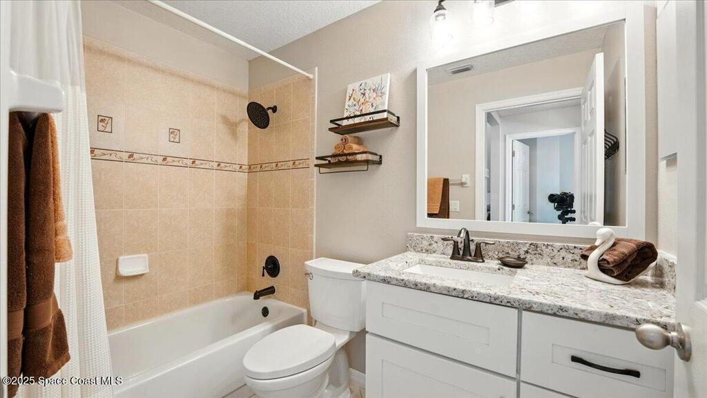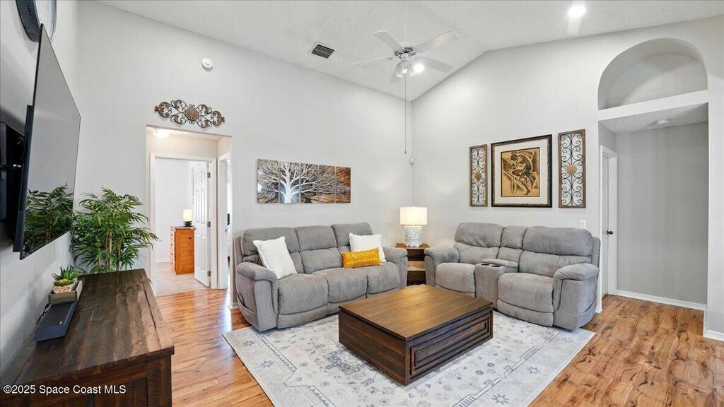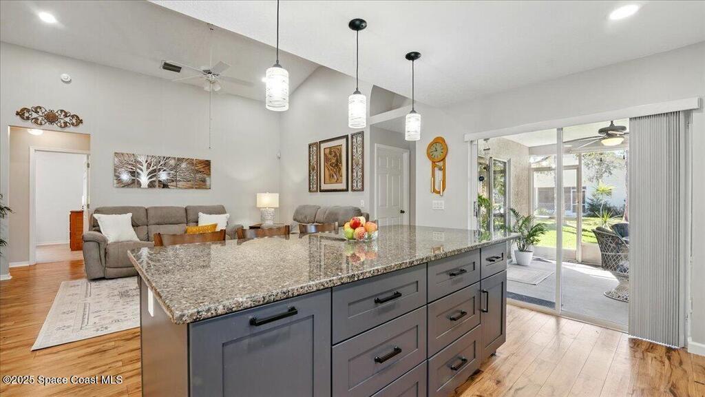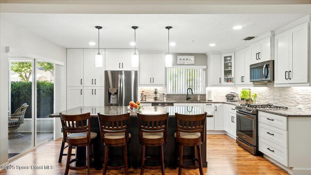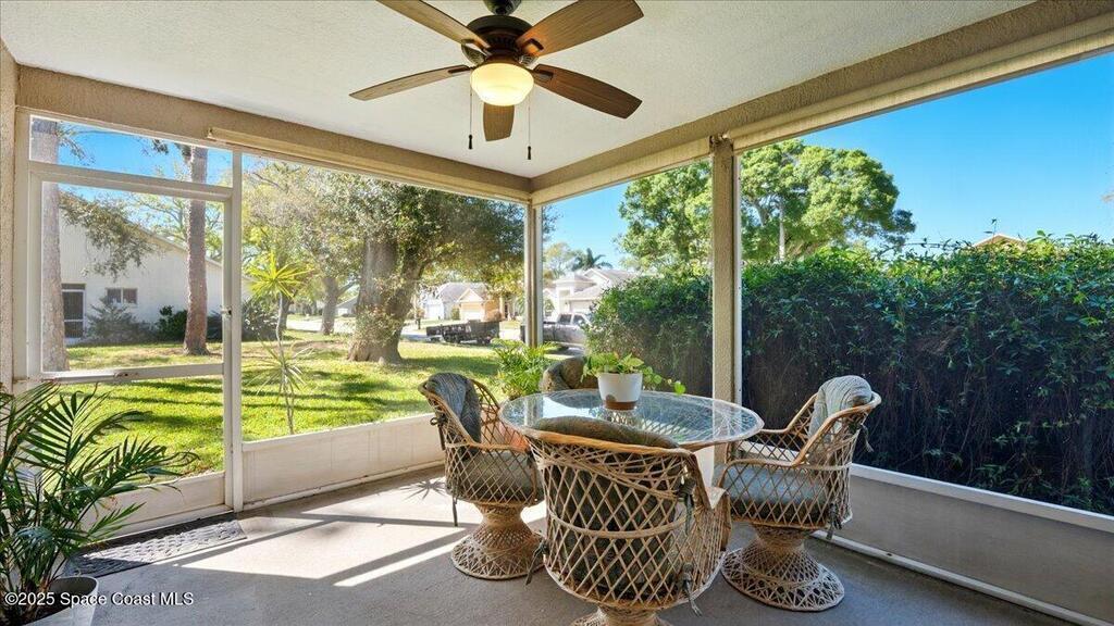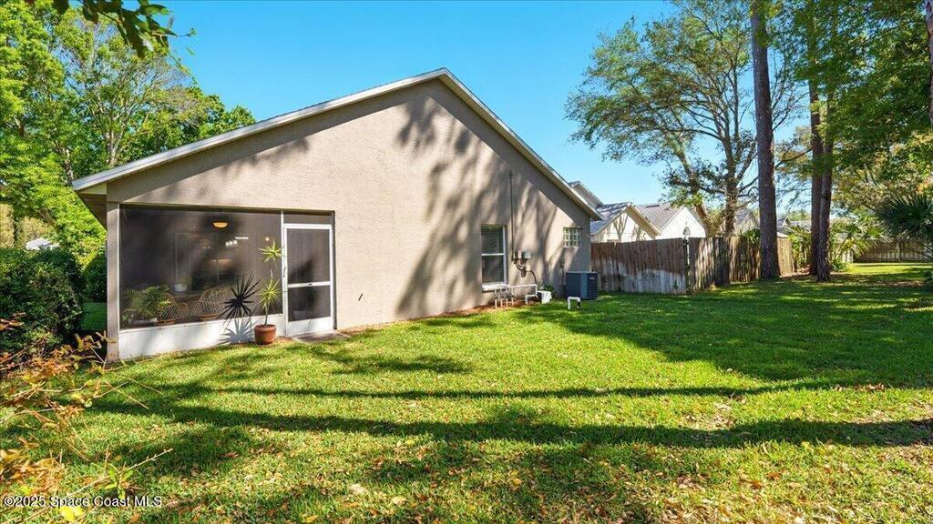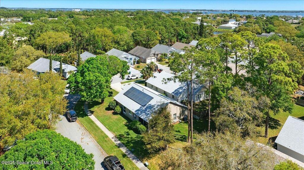 This stunning single family home boasts 3 bedrooms, 2 bathrooms, and a 2 car garage (and an extra long driveway), making it the perfect space for you and your family. The kitchen is a chef's dream with granite counters, WASHABLE CERAMIC BACKSPLASH, stainless steel appliances, and a beautifully remodeled and updated design. The bathrooms have been updated to provide a luxurious feel throughout the home. With a new roof (Dec 2024), impact windows, and (paid off) solar panels, you can enjoy low electric bills and peace of mind knowing your home is energy efficient. The water heater is only 1.5 years old, and the deep well sprinkler system will keep your lawn looking lush and green all year round. Situated on a highly desirable corner lot, this home offers a screened patio for entertaining or relaxing. The freshly painted exterior adds to the curb appeal of this already beautiful home. This home is zoned for Satellite High School and within minutes to the beach and airport.