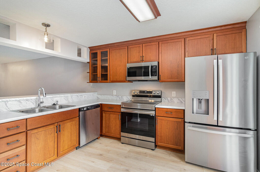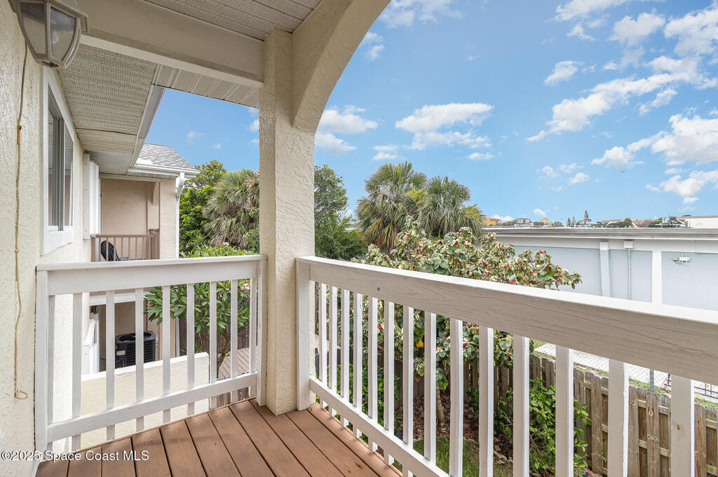 BEACH is at the end of the street! TOWNHOUSE with a PRIVATE GARAGE & FENCED REAR YARD. NEW ROOF! NO HOA FEES! Open floor plan with 3 oversized bedrooms, 2.5 bathrooms. SEPT 2025 Titan shingles with Force FX technology, 160MPH wind warranty! Front screened porch, double front doors, large kitchen with stainless steel appliances and a mobile island. There is a dedicated dining area off the kitchen and outside fenced yard. Upstairs enjoy the private balcony off the master and the en-suite bath with a beautiful tiled shower. The 2nd bed/office has a larger private balcony to watch and feel the ROCKET LAUNCHES. Port Canaveral offers several waterfront dining options. Easy access to cruise ships, surfing, fishing, biking, boating and swimming are the way of life here. LIVE IN PARADISE ALL YEAR or use as an INCOME PROPERTY for cruisers, Space X or Blue Origin workers. Easy Orlando access from 528 to airport & attraction