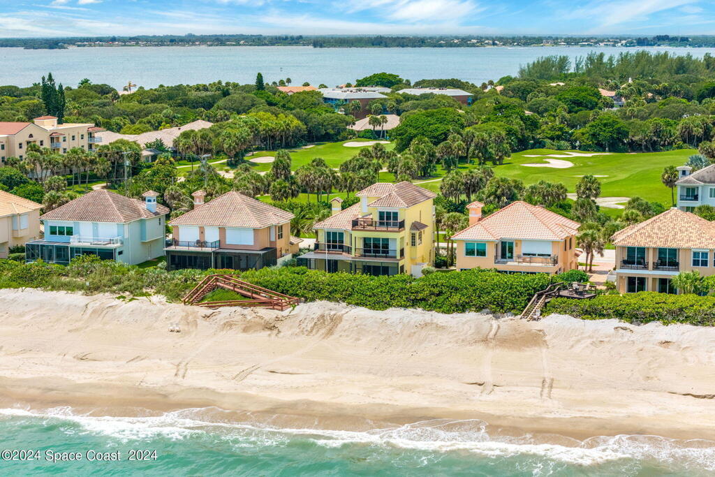 Amazing Panoramic Ocean views, 3 Floors in a golfing , boating, tennis resort community. A screened in pool with an elevator make this home a must see. Electric hurricane panels with a private handicapped-accessible ramp. Freshley painted interior make this home golfers, boaters, tennis players paradise located in a luxury community.The HOA fees cover all of the amenities in Aquarina resort and Hurricane insurance that covers the roof and the siding of the home.Owner has just had a brand new state of the art metal roof put on! It comes with a 30 year transferable Warranty! Interior has been painted as well as brand new outside electrical boxes!